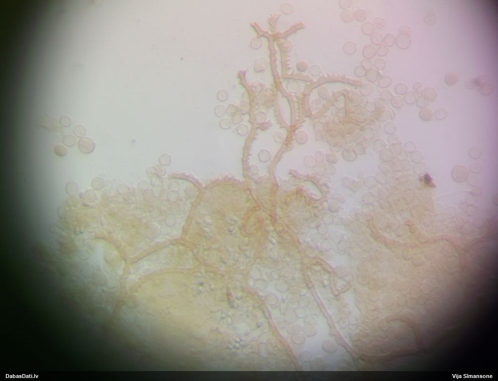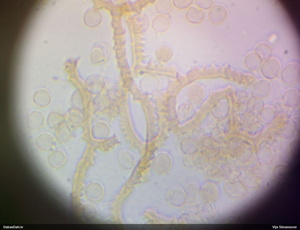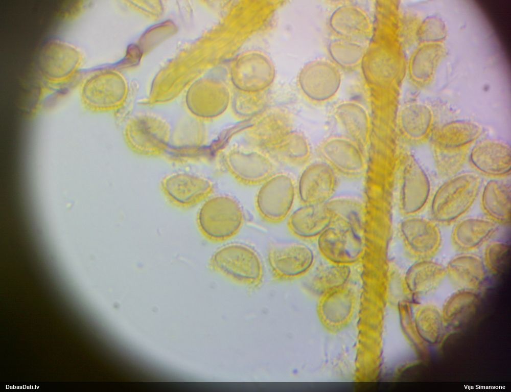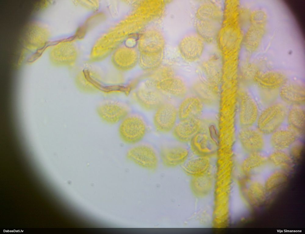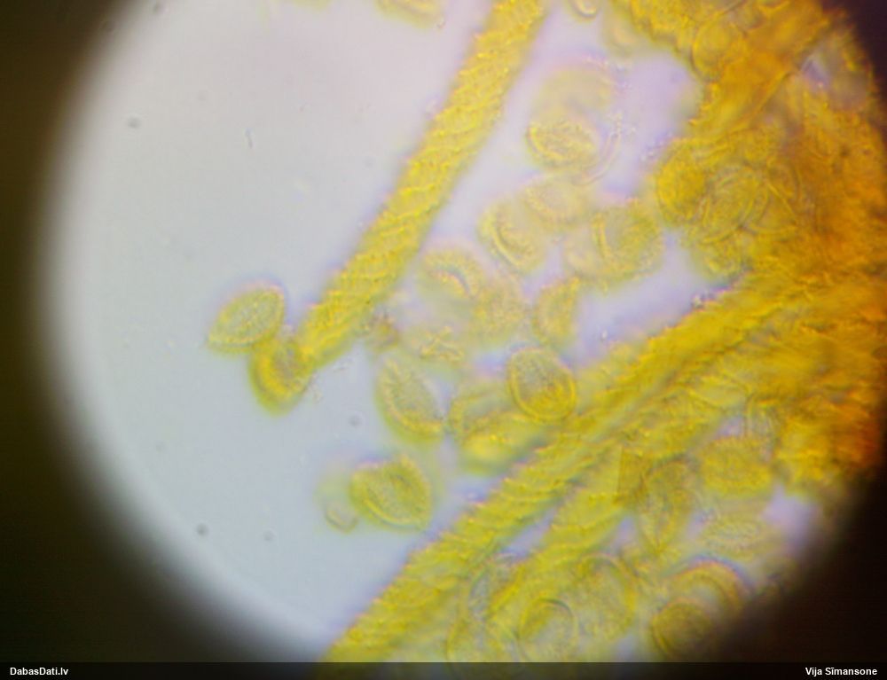 Sporas izskatās ļoti gaišas, varbūt nenobriedušas. Es laikam pēc kāda laiciņa mēģinātu vēlreiz mikroskopēt. Tajā pašā laikā sporu izmēri priekš T.contorta ir pamazi (ja tipiski ir 11-14 mkm, te ir knapi 11 mkm)