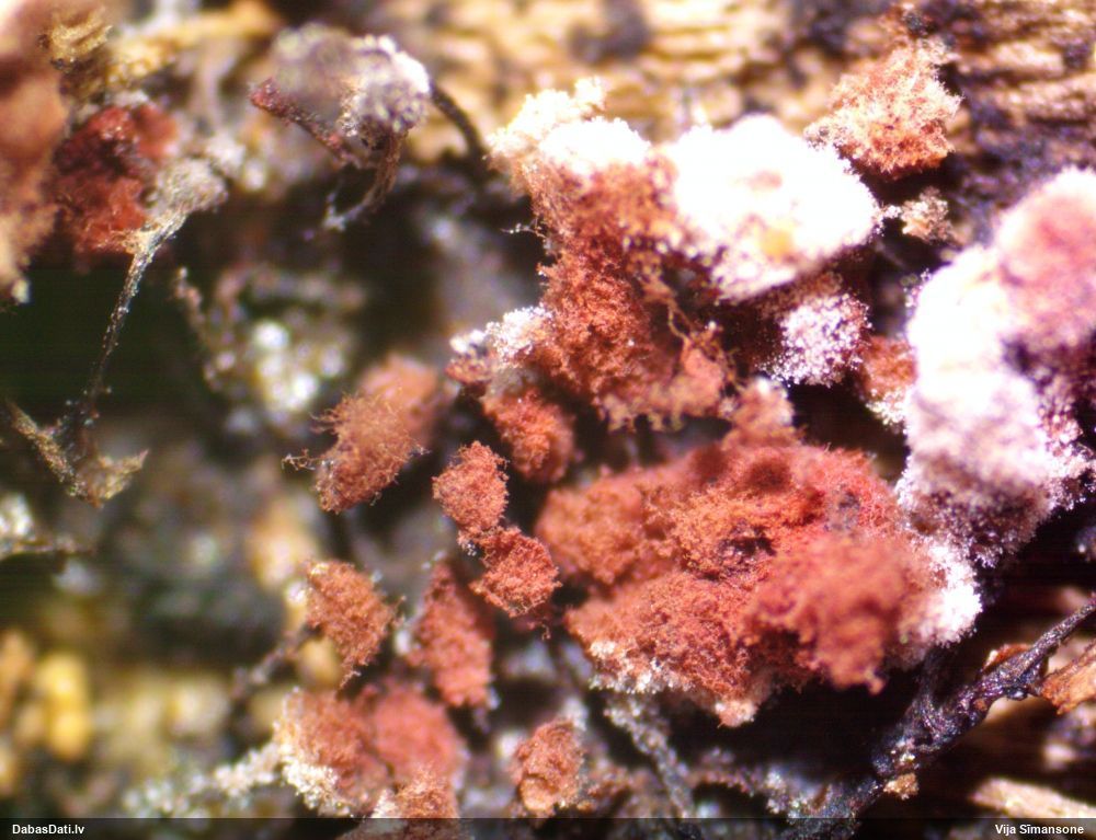 Raivo, nebūs Chaenotheca furfuracea, bet gan C.brachypoda (dabisku mežu indikatorsuga). C.furfuracea ir ar izteiktu laponi, daudz lielāki aķ un košāk zaļa krāsa