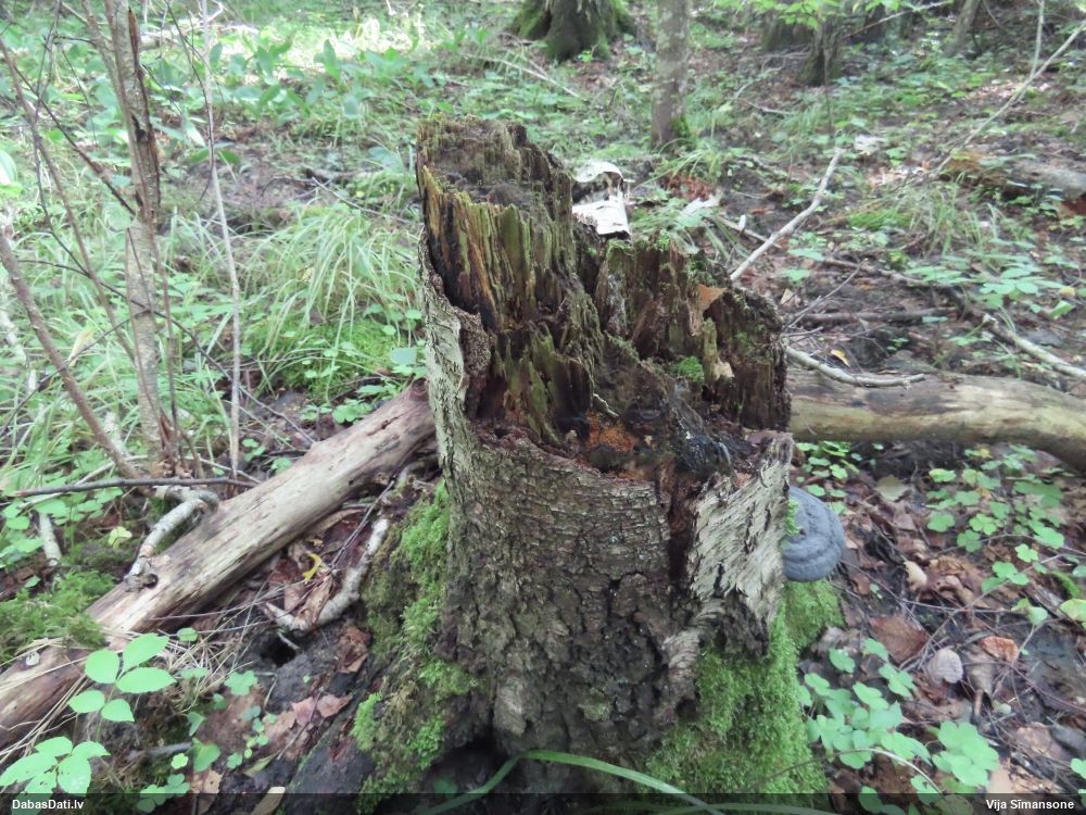 Satrūdējusi kritala mežā, nav dēļi. Iespējams, egle, jauktu koku mežs.