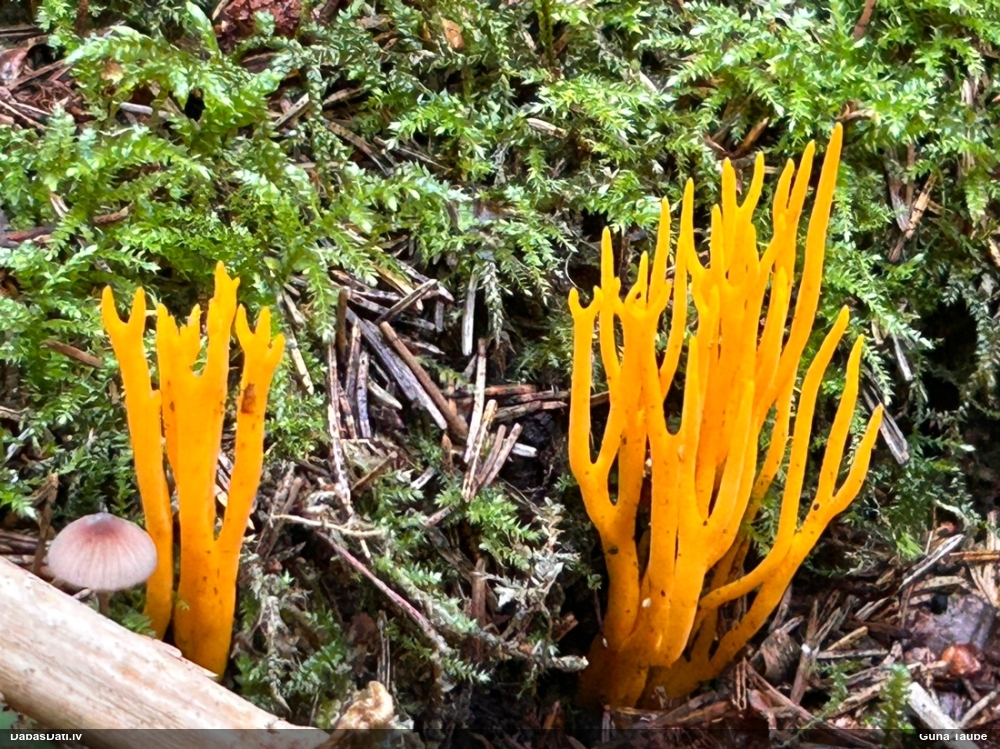 Priekš aurantiaca galīgi neatbilst jaunu augļķermeņu krāsa (kam sākumā jābūt zaļgani dzelteniem). Variants ir C.intricata, bet te mikroskopijā grūti saskatīt brīvo galu skaitu mezglos, tāpēc ātrumā droši noteikt nevaru.