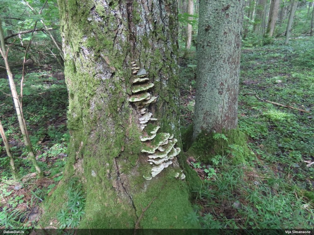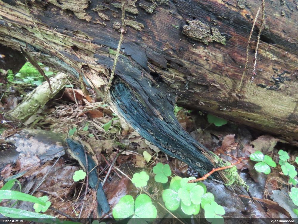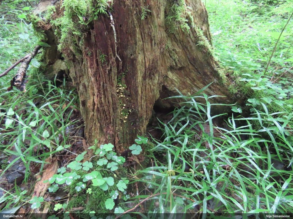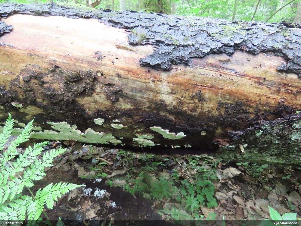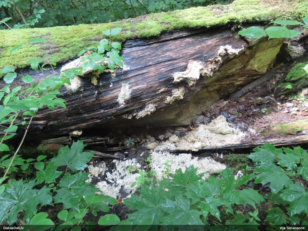Satrūdējusi kritala mežā, nav dēļi. Iespējams, egle, jauktu koku mežs.