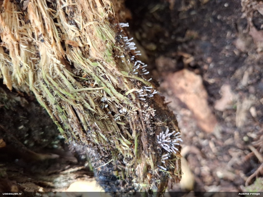 Raivo, nebūs Chaenotheca furfuracea, bet gan C.brachypoda (dabisku mežu indikatorsuga). C.furfuracea ir ar izteiktu laponi, daudz lielāki aķ un košāk zaļa krāsa