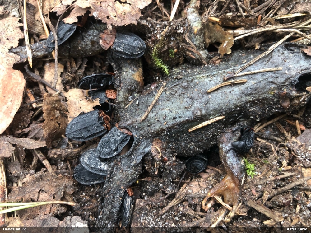 Jā, zem mizas uz nokaltušas priedes.