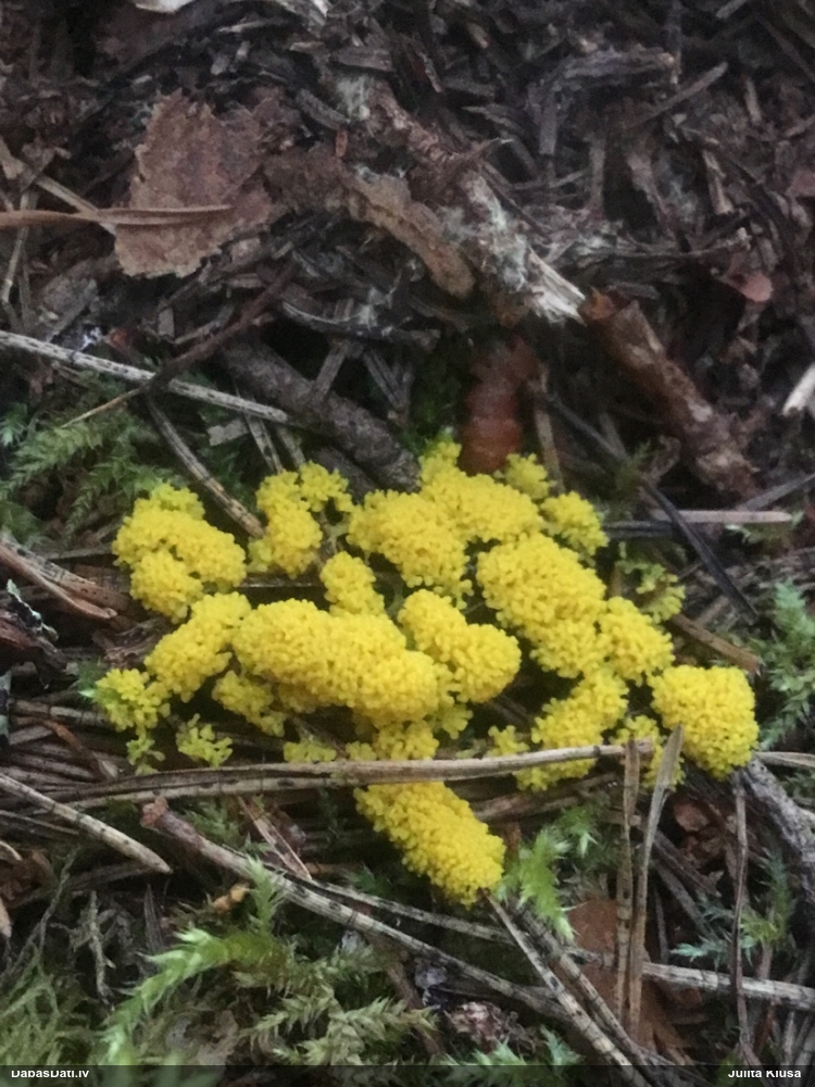 Jā, varbūt zeltmatu Physarum flavicomum