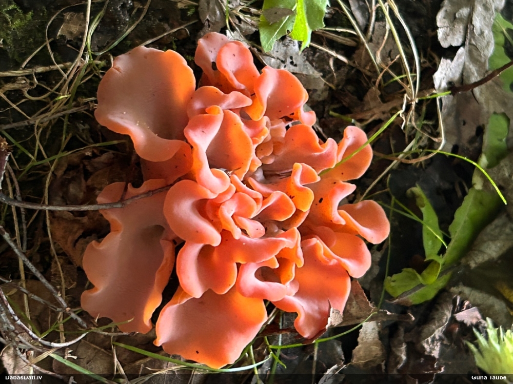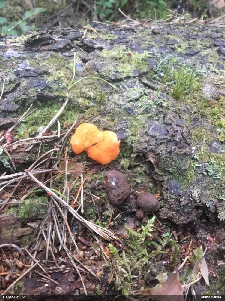 Priekš aurantiaca galīgi neatbilst jaunu augļķermeņu krāsa (kam sākumā jābūt zaļgani dzelteniem). Variants ir C.intricata, bet te mikroskopijā grūti saskatīt brīvo galu skaitu mezglos, tāpēc ātrumā droši noteikt nevaru.