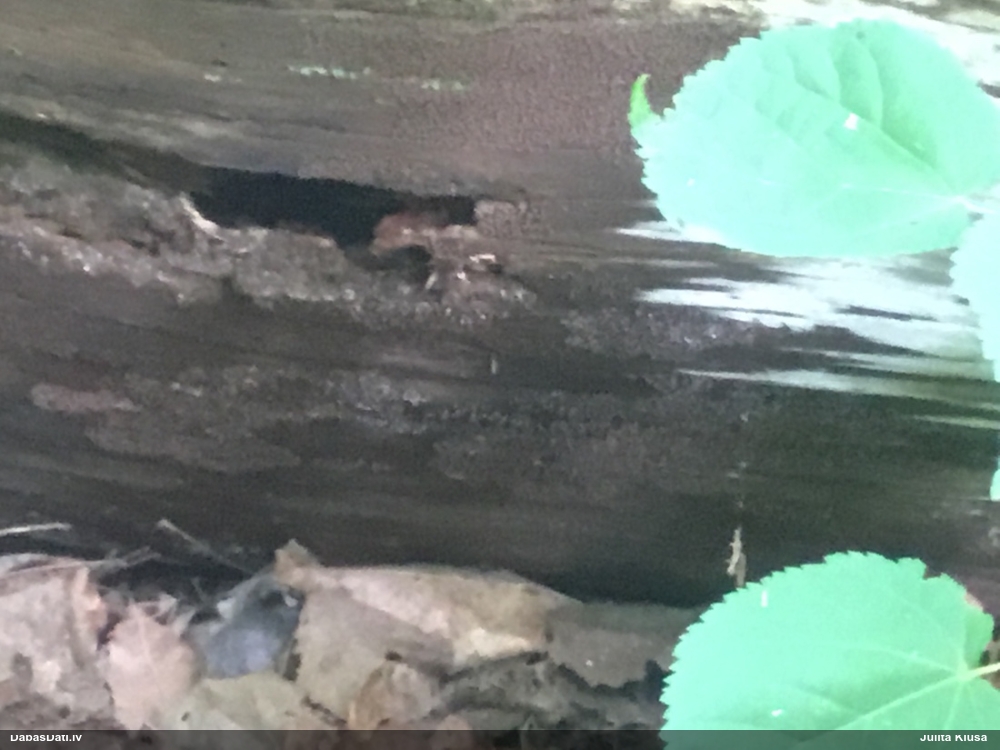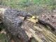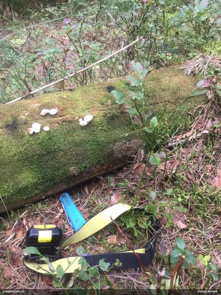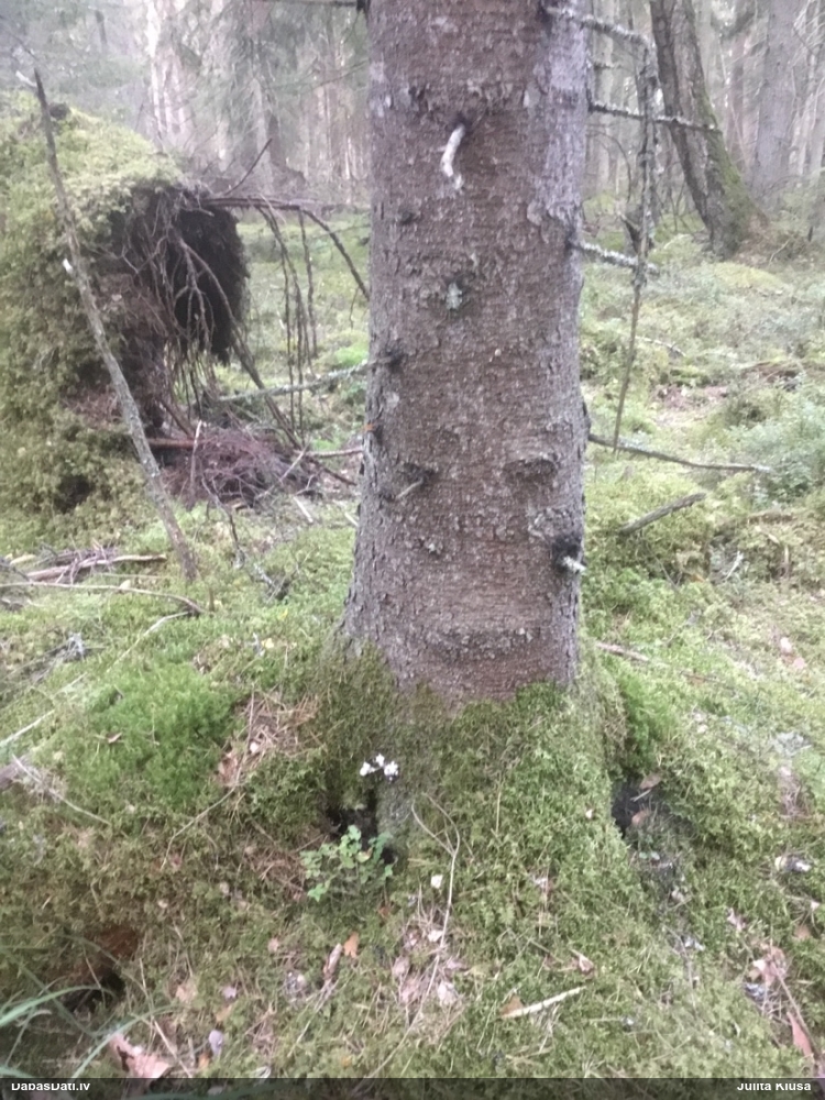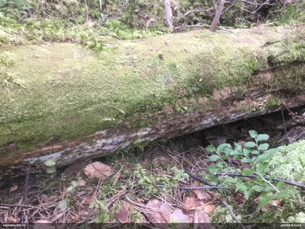 Satrūdējusi kritala mežā, nav dēļi. Iespējams, egle, jauktu koku mežs.