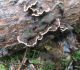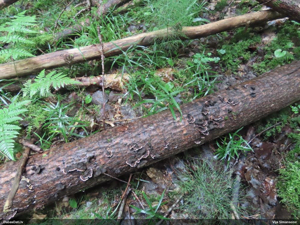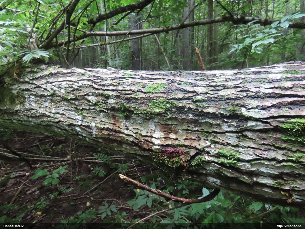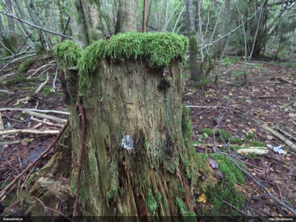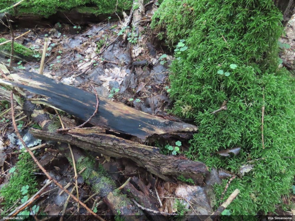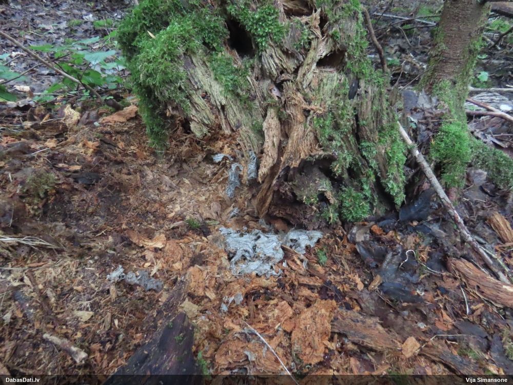 Satrūdējusi kritala mežā, nav dēļi. Iespējams, egle, jauktu koku mežs.