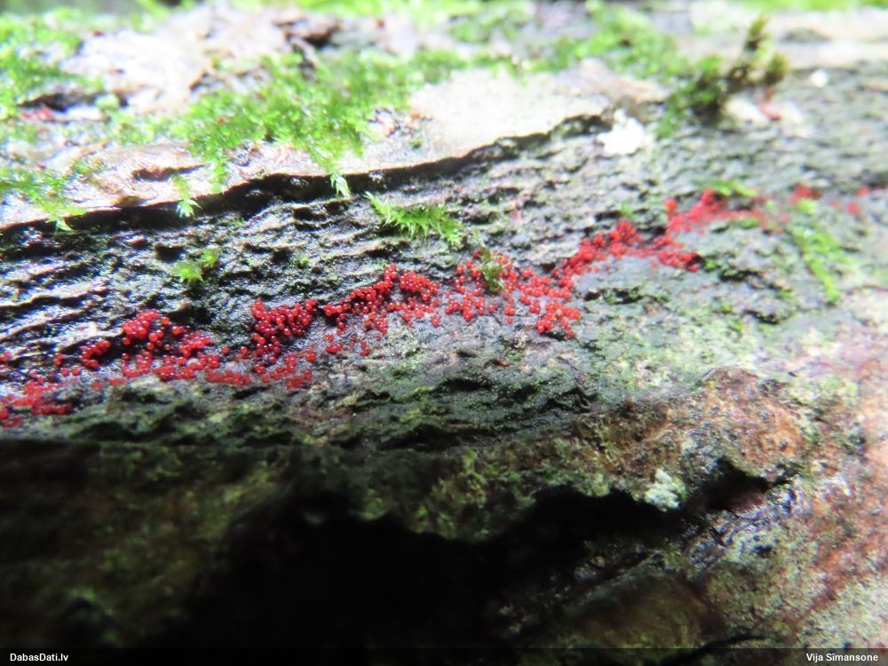 Šobrīd divas versijas - Physarum psittacinum un P.braunianum. Bez paraudziņa te skaidrīzā netiks, bet biotops interesants