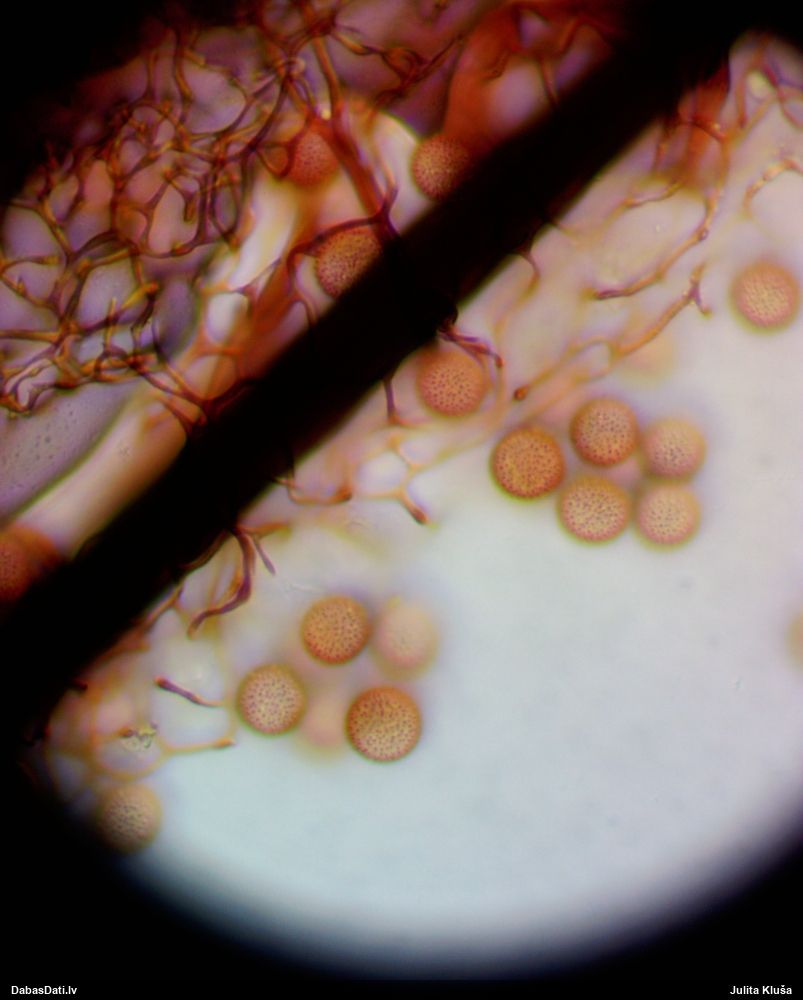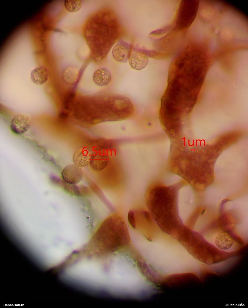 Sporas izskatās ļoti gaišas, varbūt nenobriedušas. Es laikam pēc kāda laiciņa mēģinātu vēlreiz mikroskopēt. Tajā pašā laikā sporu izmēri priekš T.contorta ir pamazi (ja tipiski ir 11-14 mkm, te ir knapi 11 mkm)