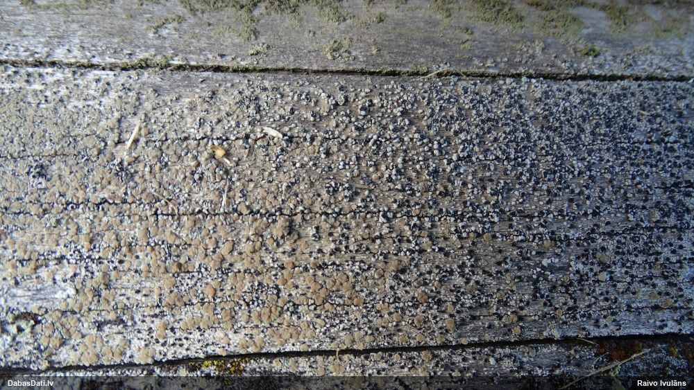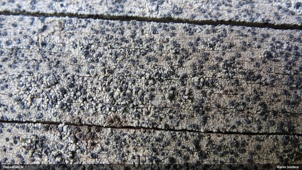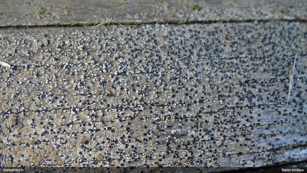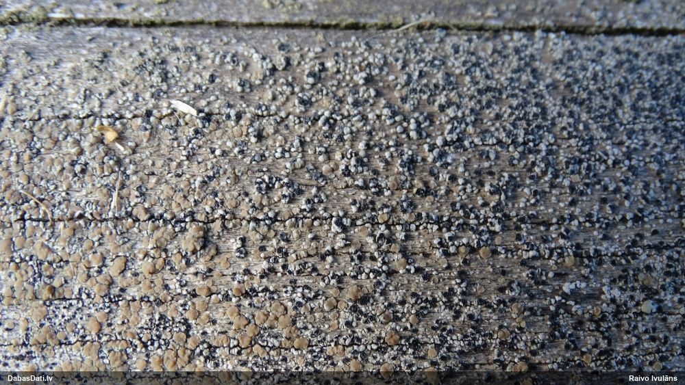 Šobrīd varu iedomāties 2 variantus - melnā plaispika Amaurochaete atra vai parastais gļotpūpēdis Reticularia lycoperdon. Pēc izmēra, augšanas laika un augšanas uz apstrādāta koka atbilst abas.