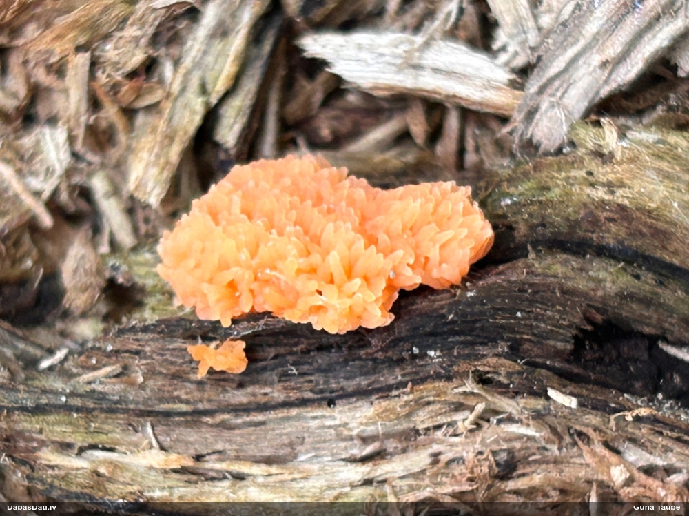 Priekš aurantiaca galīgi neatbilst jaunu augļķermeņu krāsa (kam sākumā jābūt zaļgani dzelteniem). Variants ir C.intricata, bet te mikroskopijā grūti saskatīt brīvo galu skaitu mezglos, tāpēc ātrumā droši noteikt nevaru.