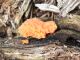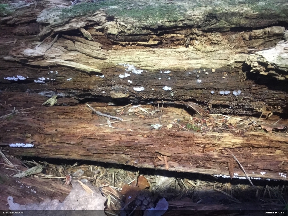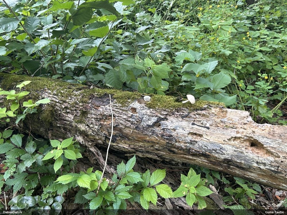 Satrūdējusi kritala mežā, nav dēļi. Iespējams, egle, jauktu koku mežs.