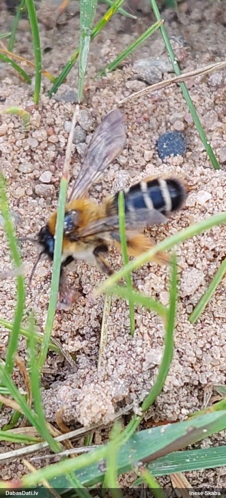 Jāredz tuvāk (kaut vai izkadrēts šis pats attēls) - varbūt tumšā eļļasvabole (Meloe proscarabaeus)