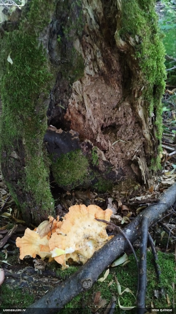 Satrūdējusi kritala mežā, nav dēļi. Iespējams, egle, jauktu koku mežs.