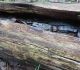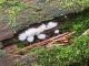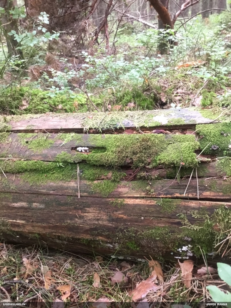 Satrūdējusi kritala mežā, nav dēļi. Iespējams, egle, jauktu koku mežs.