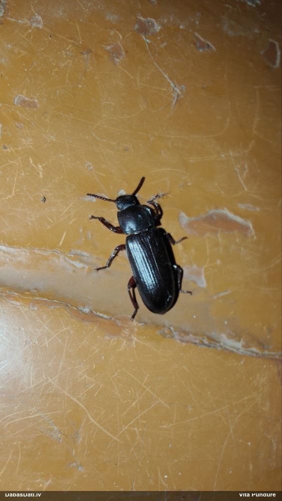 Jāredz tuvāk (kaut vai izkadrēts šis pats attēls) - varbūt tumšā eļļasvabole (Meloe proscarabaeus)