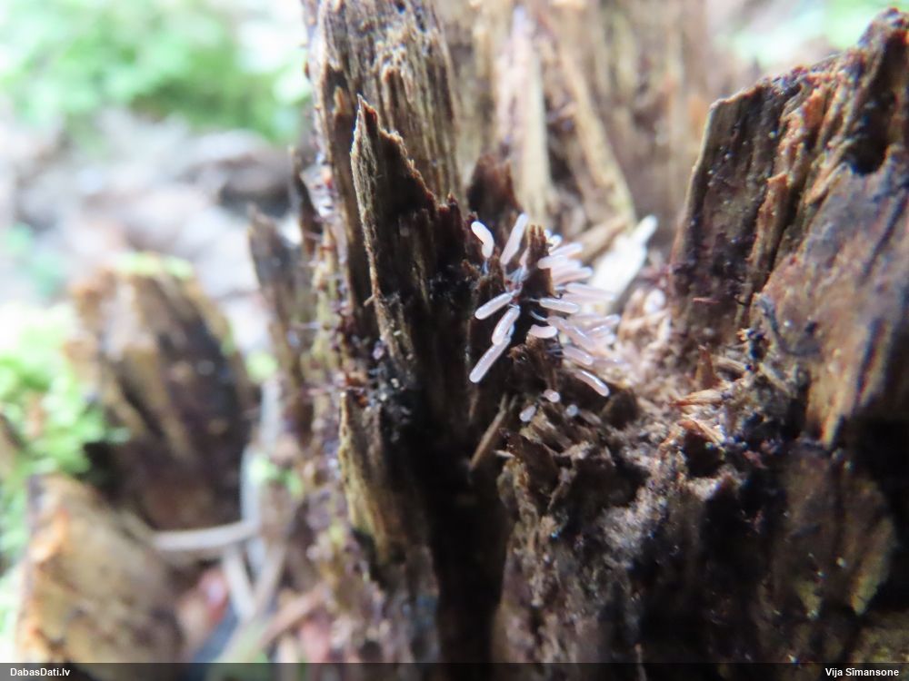Jā, zem mizas uz nokaltušas priedes.