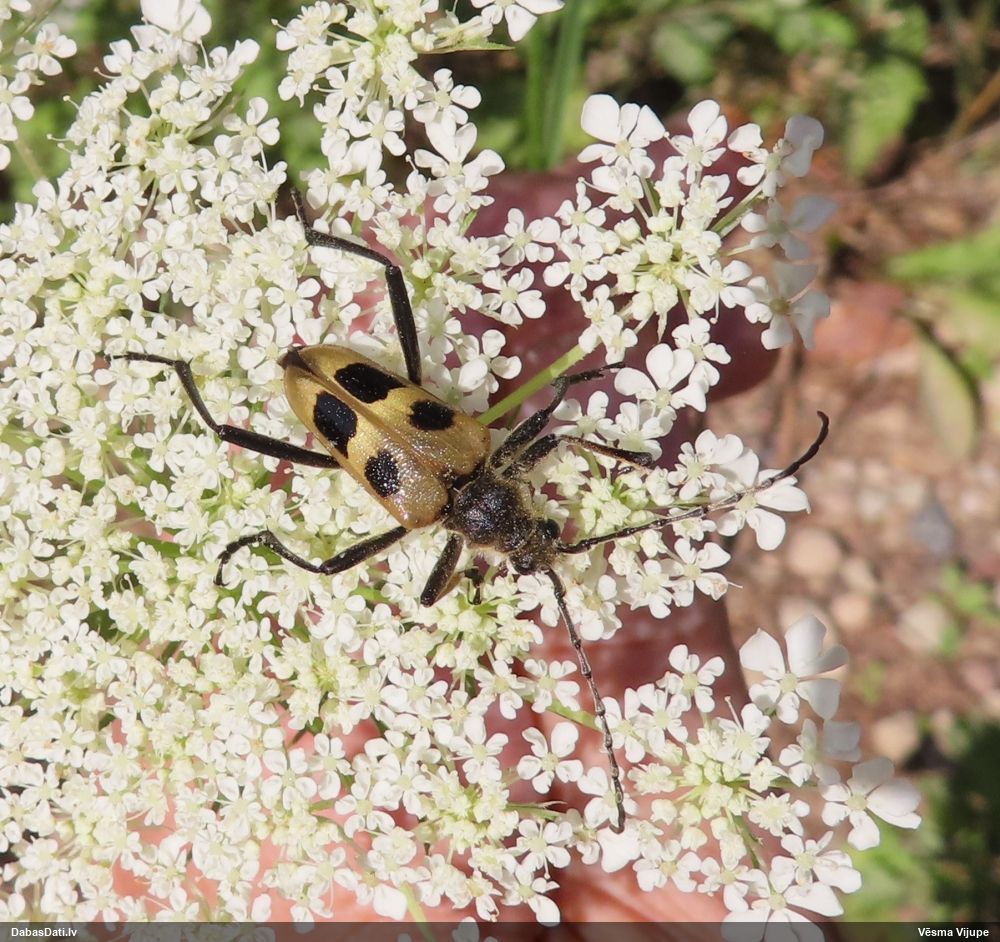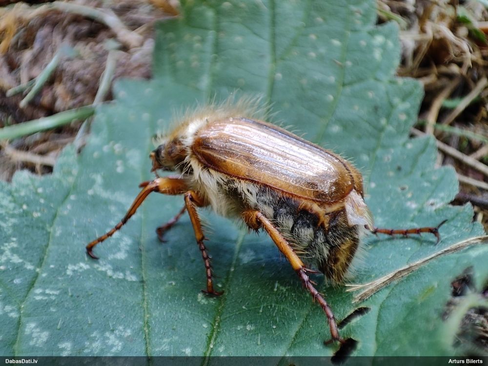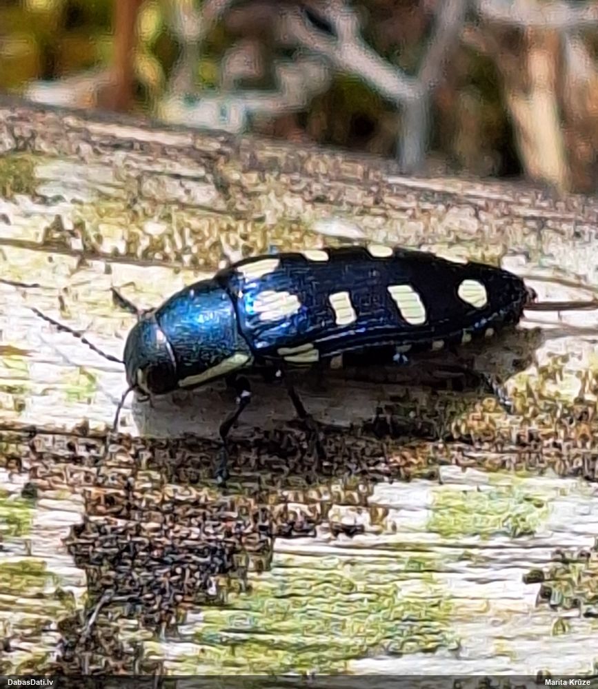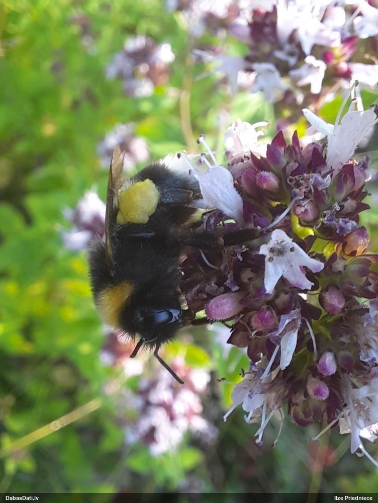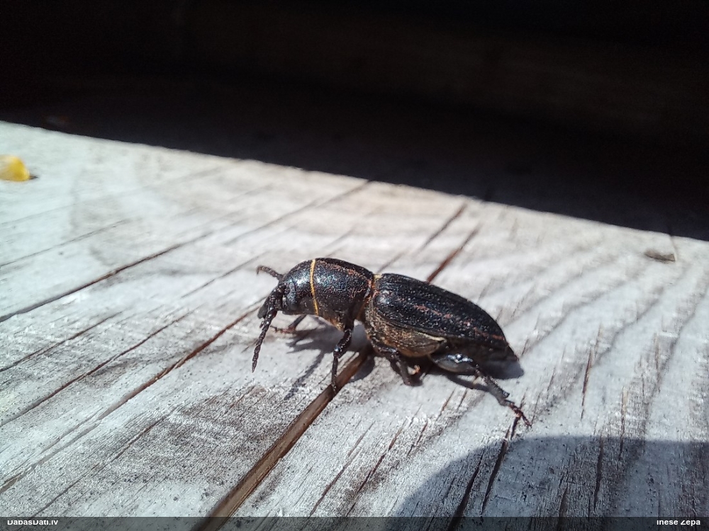 Jāredz tuvāk (kaut vai izkadrēts šis pats attēls) - varbūt tumšā eļļasvabole (Meloe proscarabaeus)