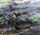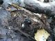 Satrūdējusi kritala mežā, nav dēļi. Iespējams, egle, jauktu koku mežs.