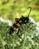 Jāredz tuvāk (kaut vai izkadrēts šis pats attēls) - varbūt tumšā eļļasvabole (Meloe proscarabaeus)