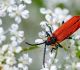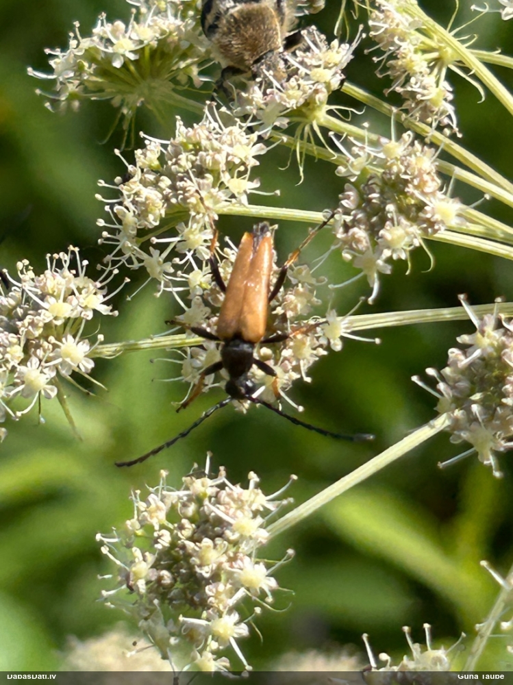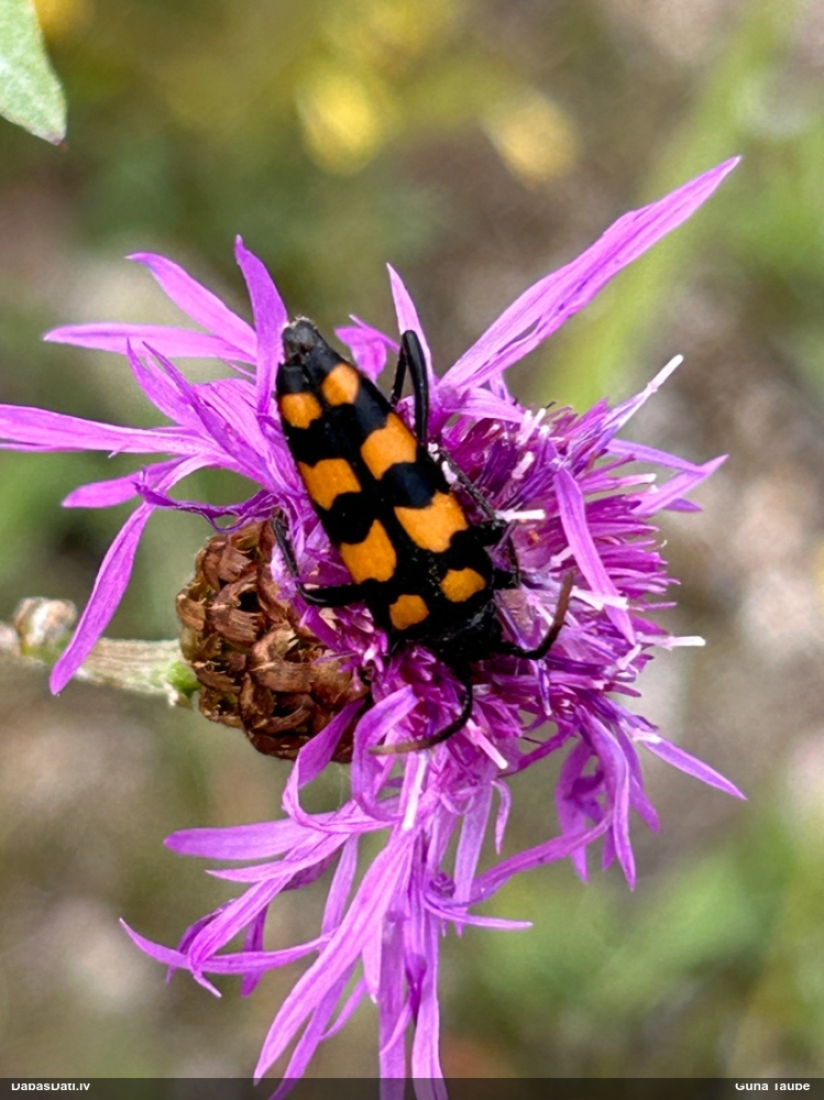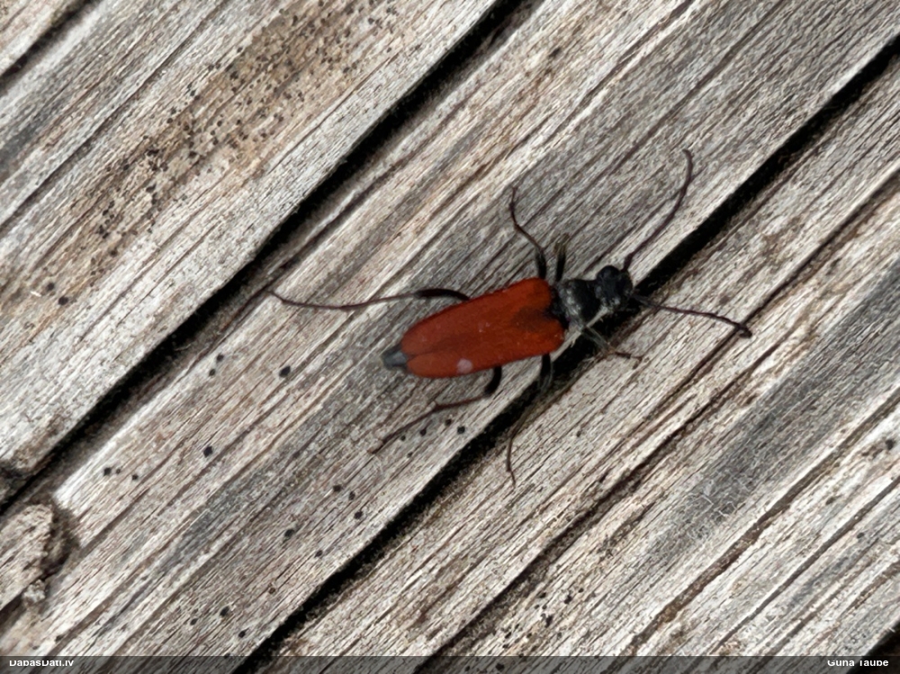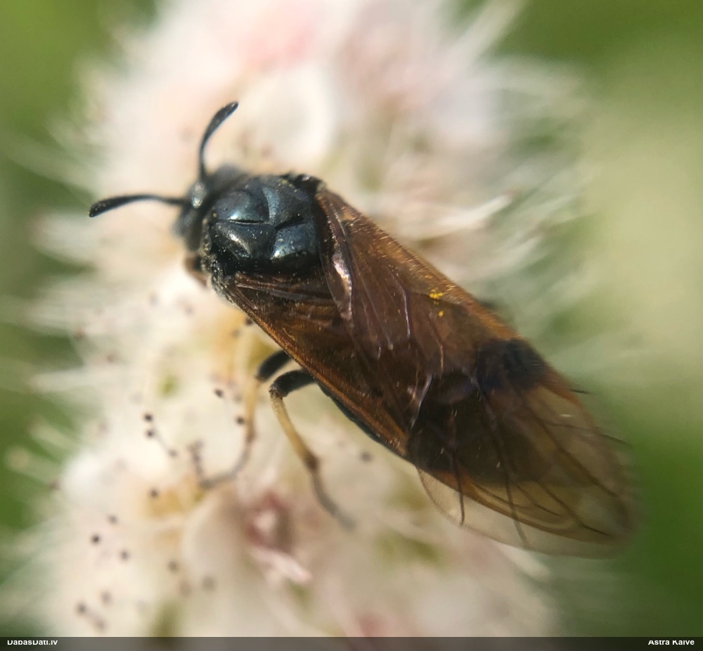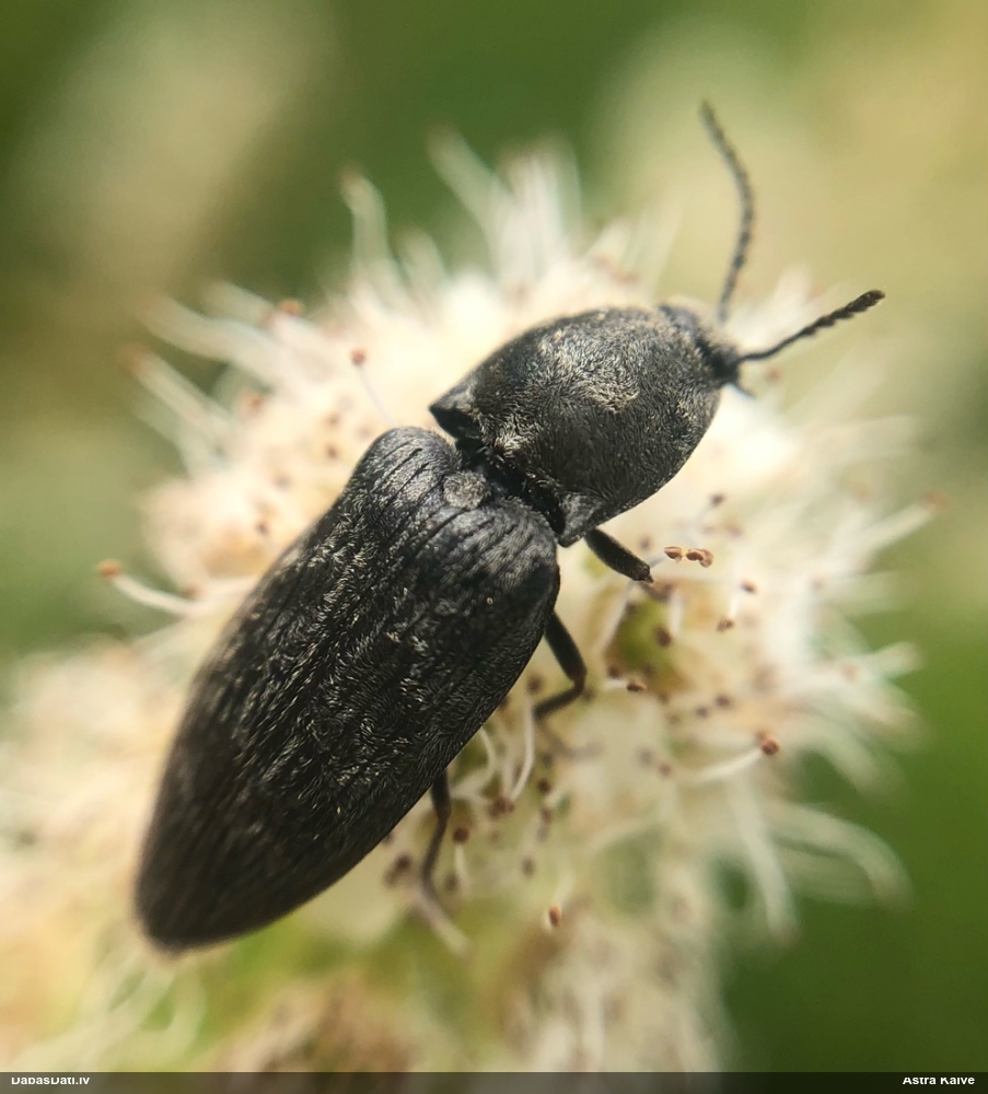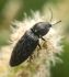 Jāredz tuvāk (kaut vai izkadrēts šis pats attēls) - varbūt tumšā eļļasvabole (Meloe proscarabaeus)
