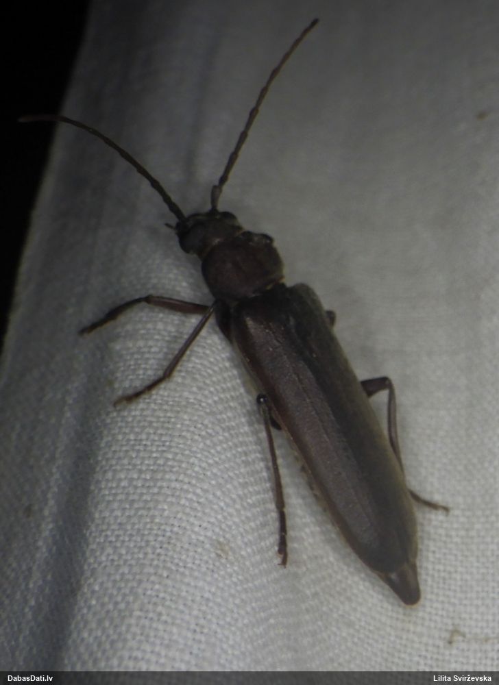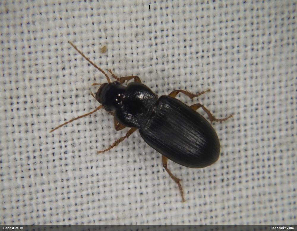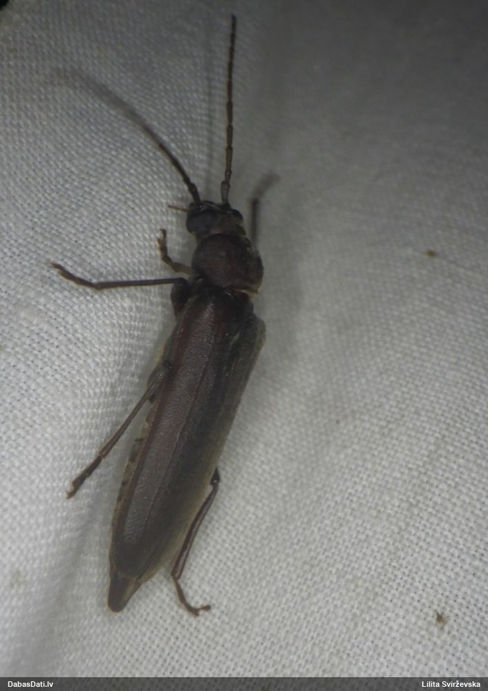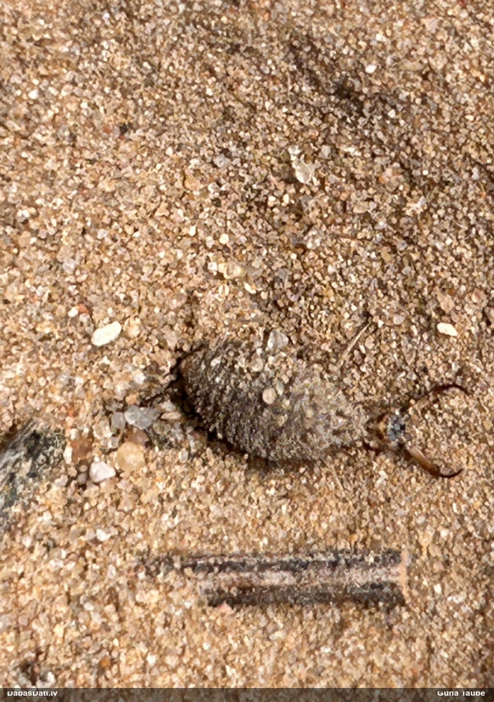Jāredz tuvāk (kaut vai izkadrēts šis pats attēls) - varbūt tumšā eļļasvabole (Meloe proscarabaeus)