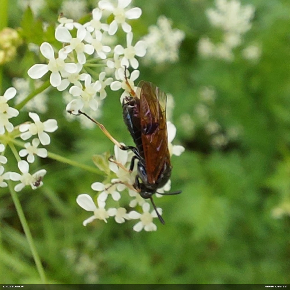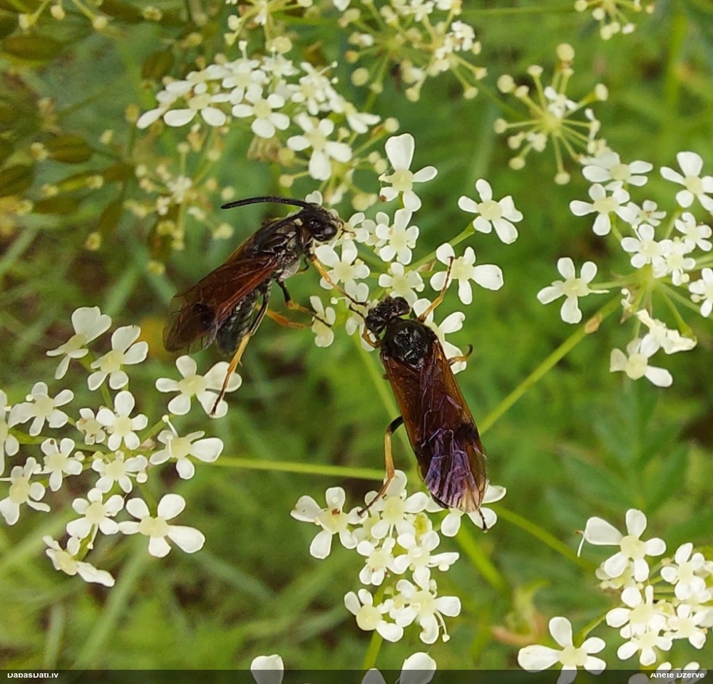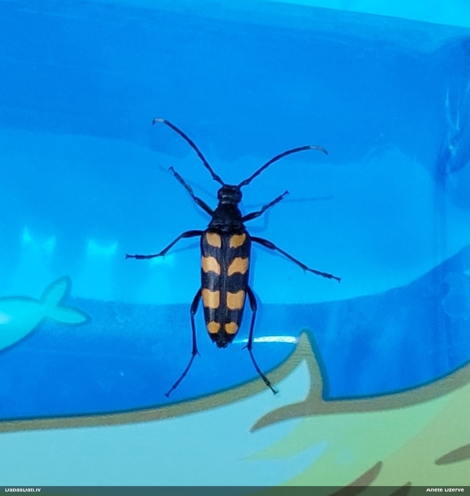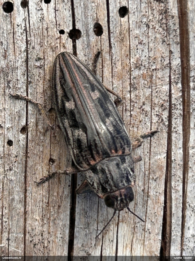 Jāredz tuvāk (kaut vai izkadrēts šis pats attēls) - varbūt tumšā eļļasvabole (Meloe proscarabaeus)