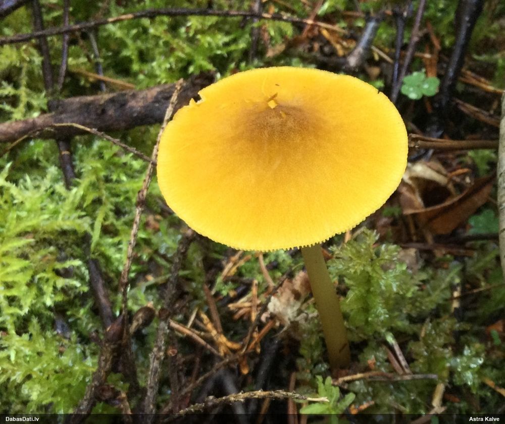 Man pēkšņi radās ideja - vai tur bija nu ļoti mitrs mikroklimats, egle ar melnalksni? Hipotētiski tādas dzeltenas var būt Diachea muscorum. Te bilde ir mazliet līdzīga: https://fr.wikipedia.org/wiki/Fichier:Craterium_muscorum,_Trawscoed,_North_Wales,_Aug_2016_-_Flickr_-_janetgraham84.jpg