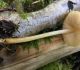 Satrūdējusi kritala mežā, nav dēļi. Iespējams, egle, jauktu koku mežs.