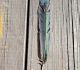 zaļš un zils augšā, uz kreisās kājas abiem baltajiem gredzeniem bij kaut kāda kaslīte.