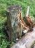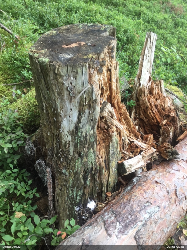 Satrūdējusi kritala mežā, nav dēļi. Iespējams, egle, jauktu koku mežs.
