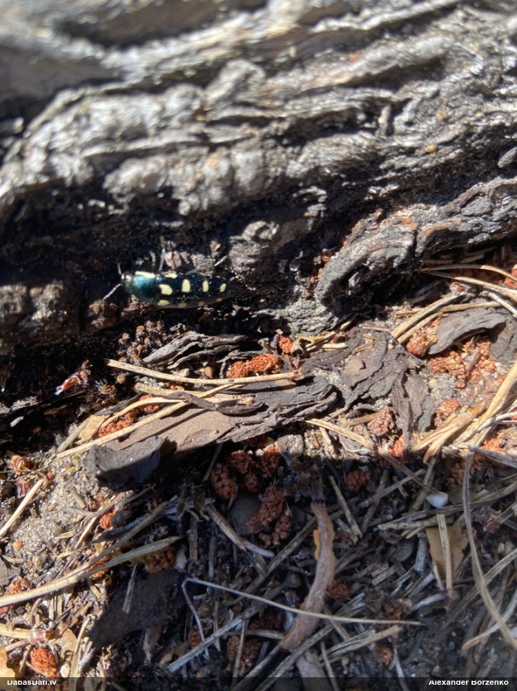 Jā, zem mizas uz nokaltušas priedes.
