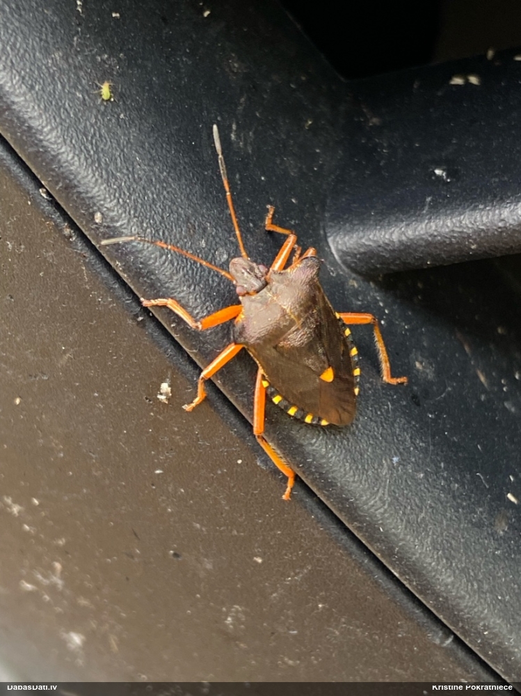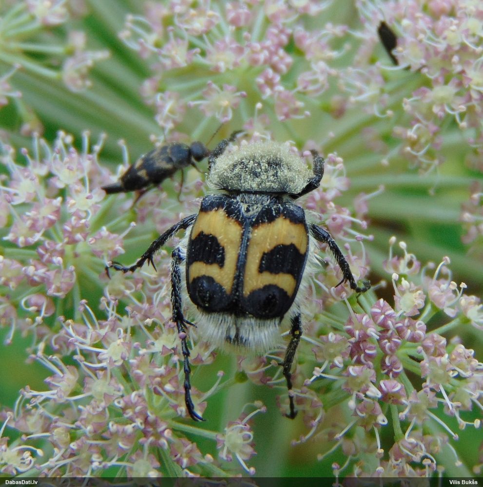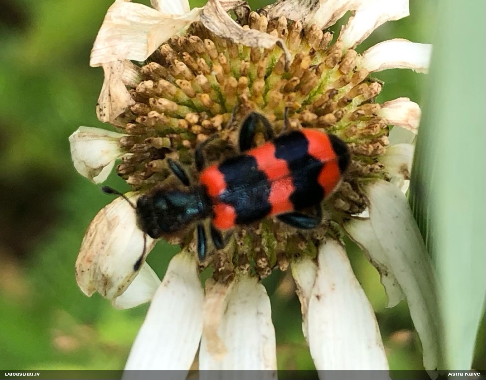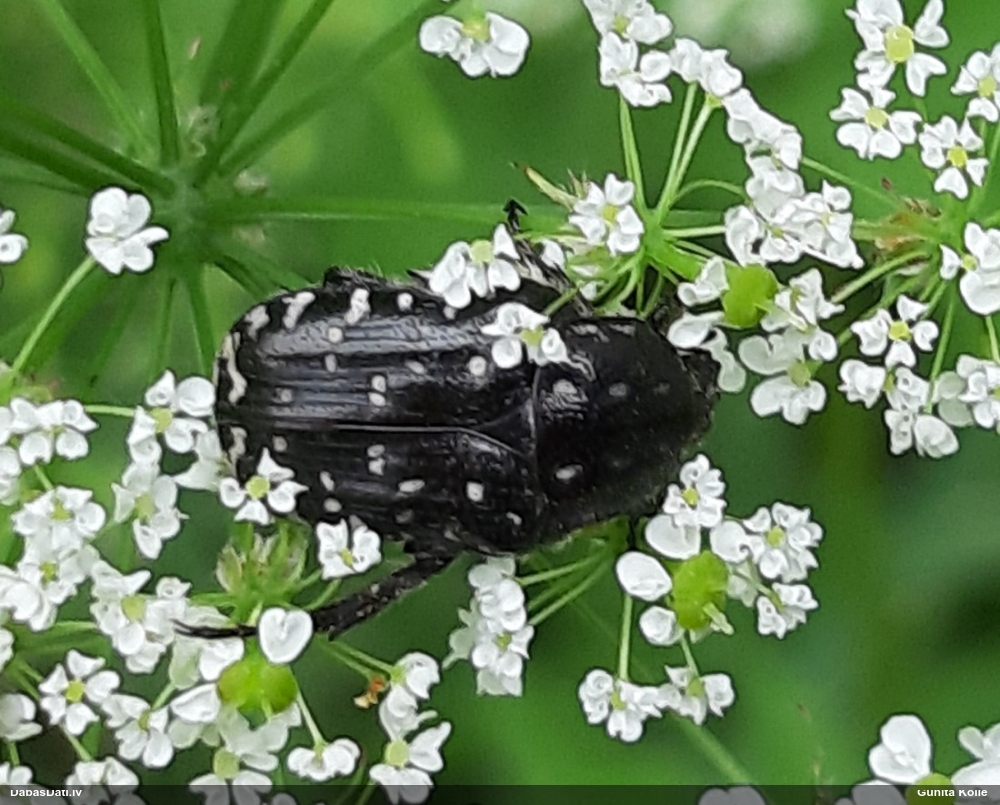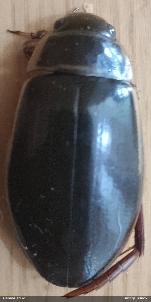 Jāredz tuvāk (kaut vai izkadrēts šis pats attēls) - varbūt tumšā eļļasvabole (Meloe proscarabaeus)