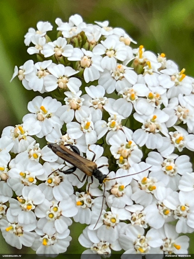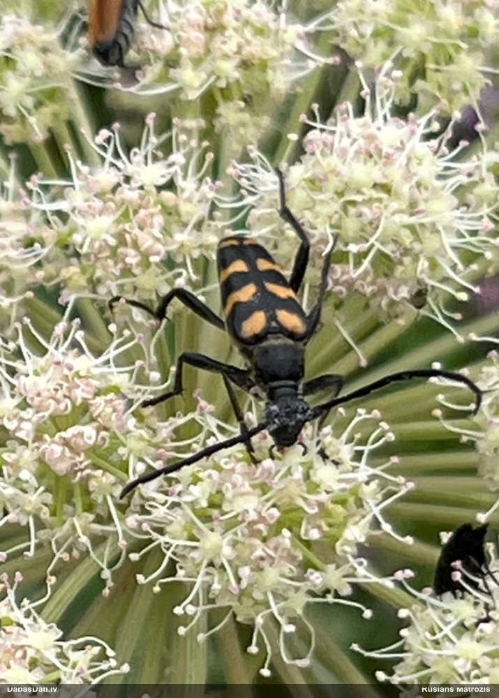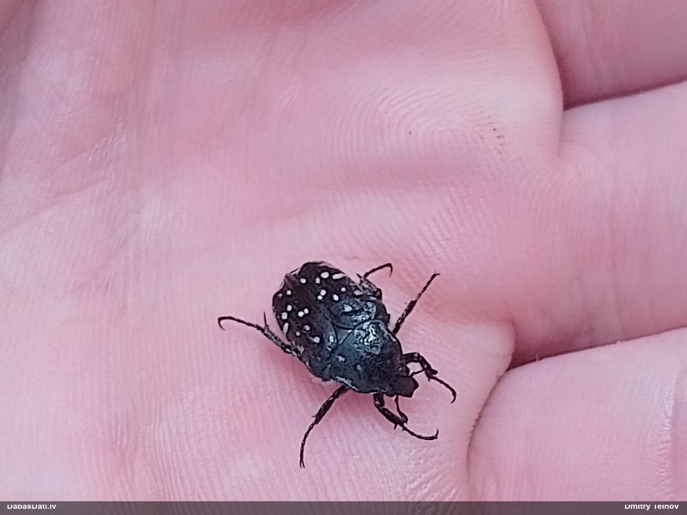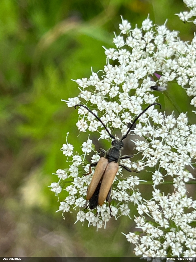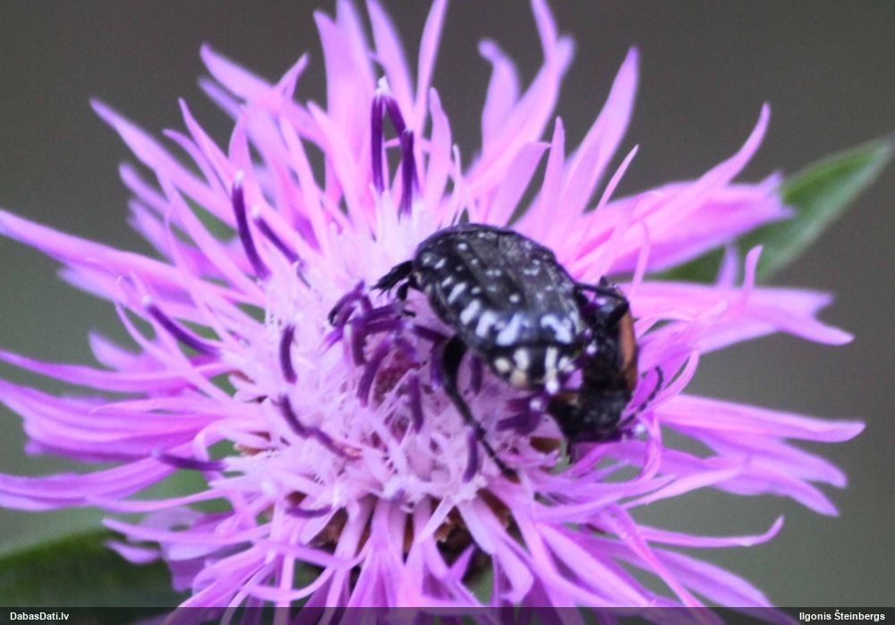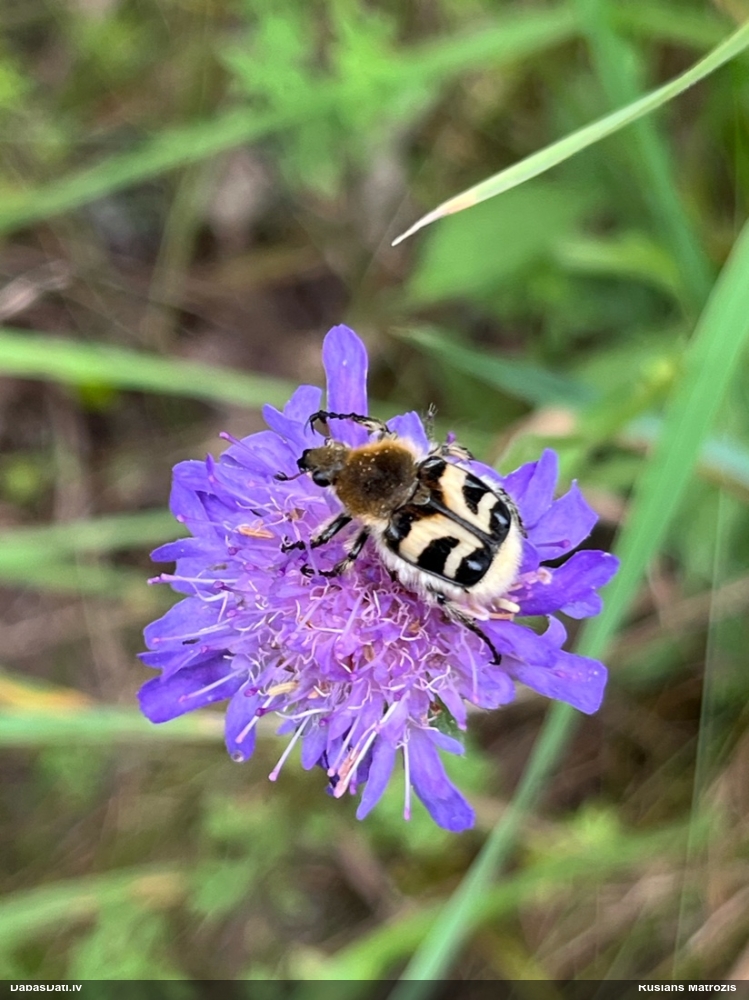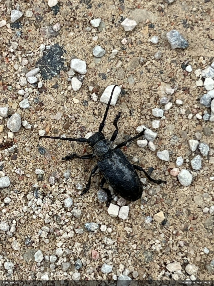 Jāredz tuvāk (kaut vai izkadrēts šis pats attēls) - varbūt tumšā eļļasvabole (Meloe proscarabaeus)