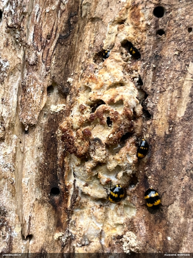 Jā, zem mizas uz nokaltušas priedes.