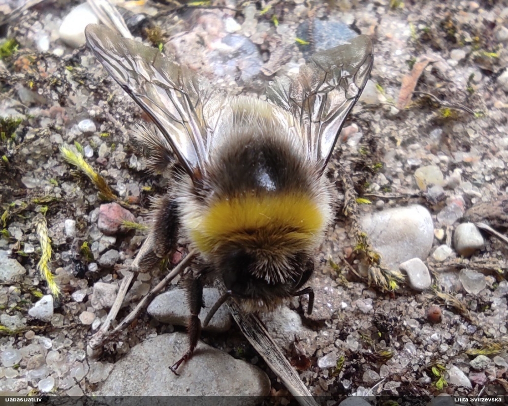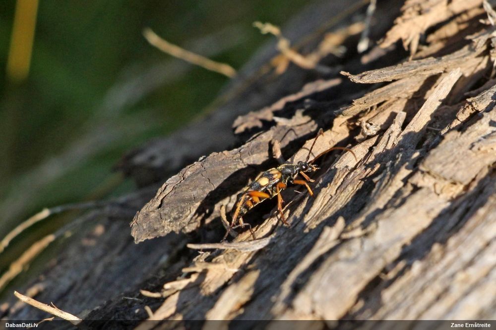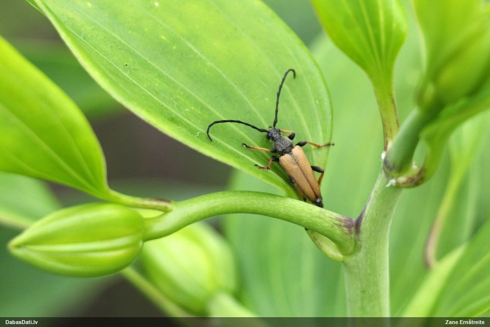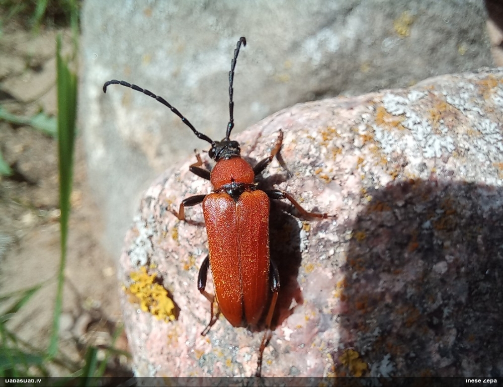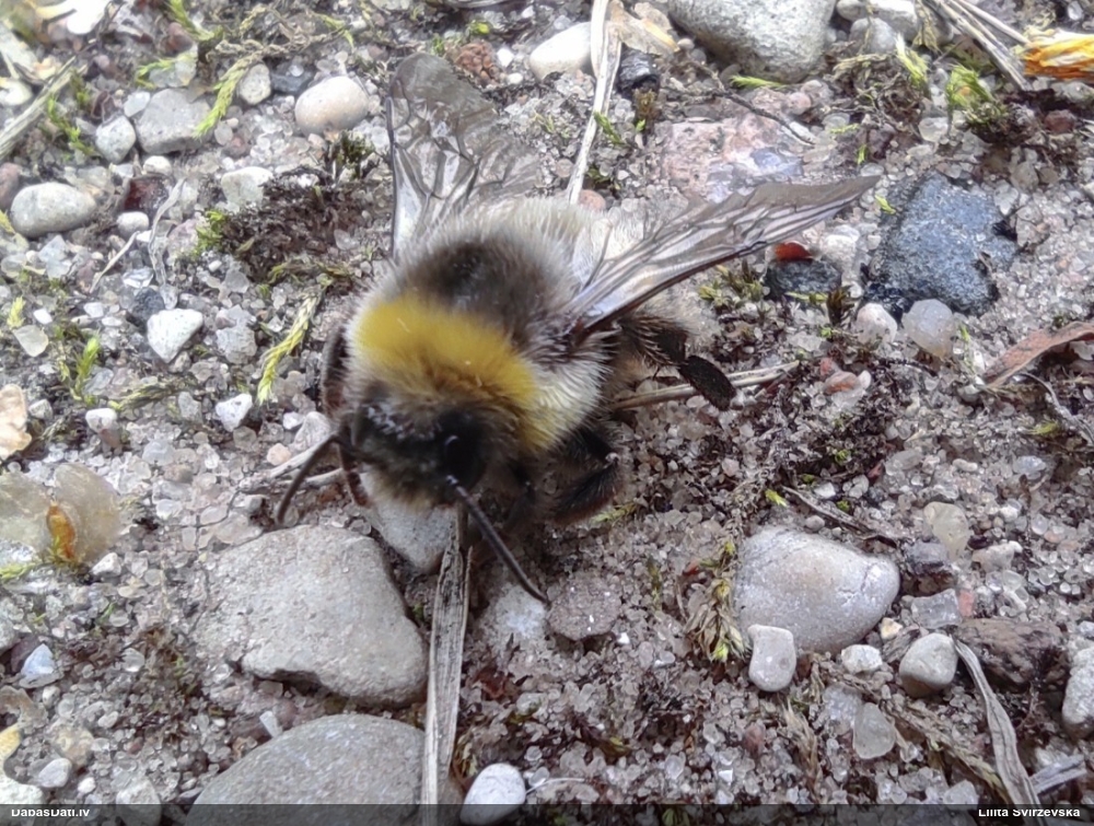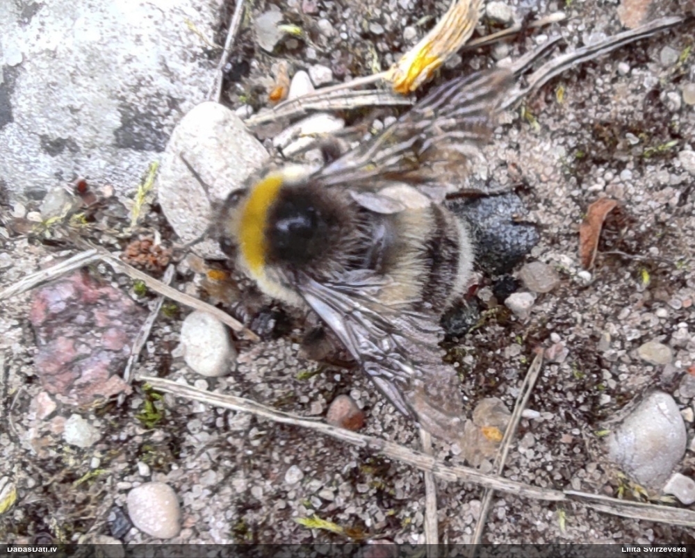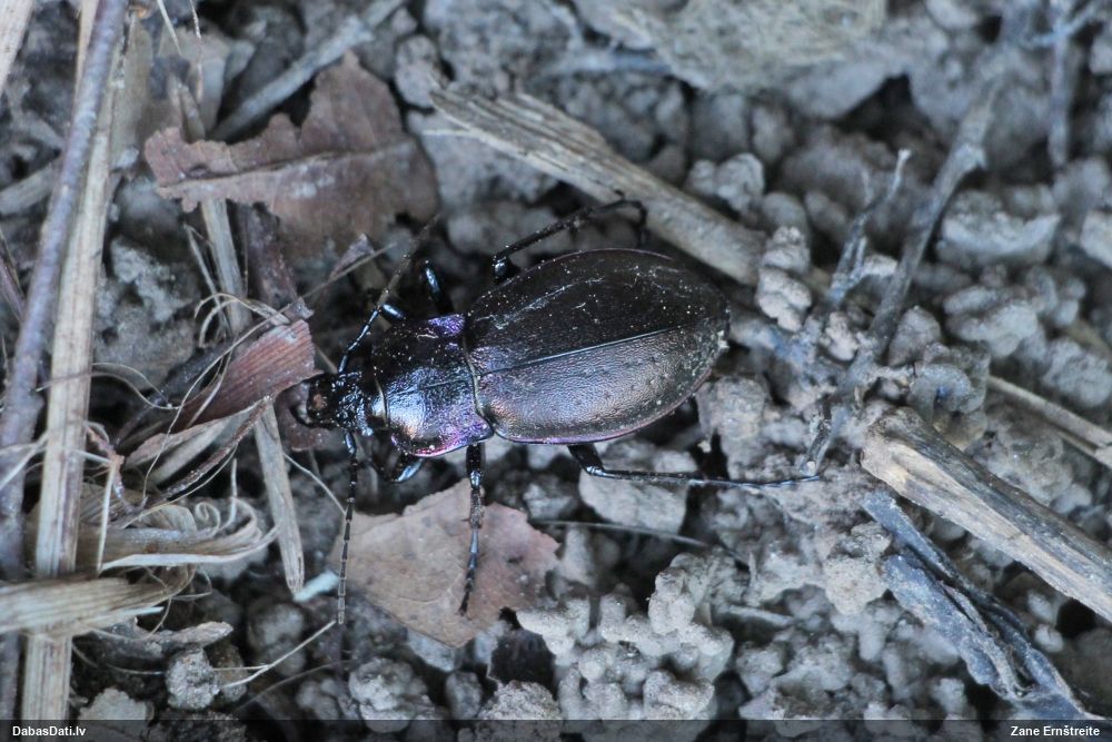 Jāredz tuvāk (kaut vai izkadrēts šis pats attēls) - varbūt tumšā eļļasvabole (Meloe proscarabaeus)