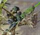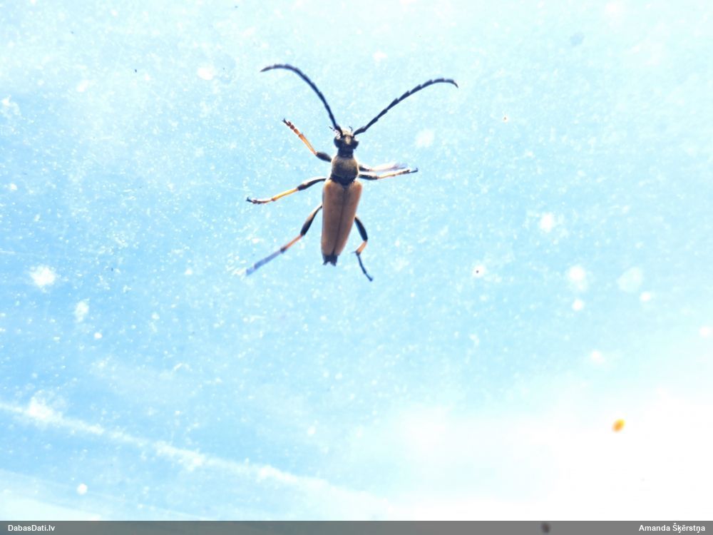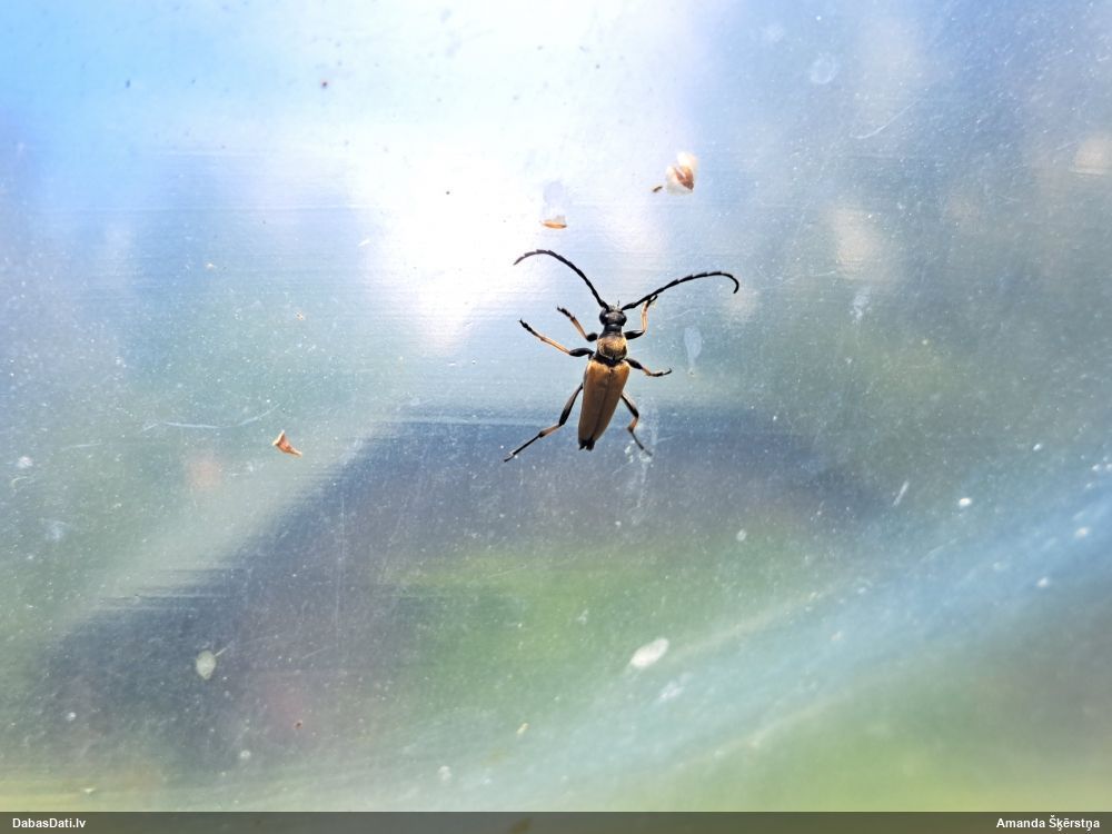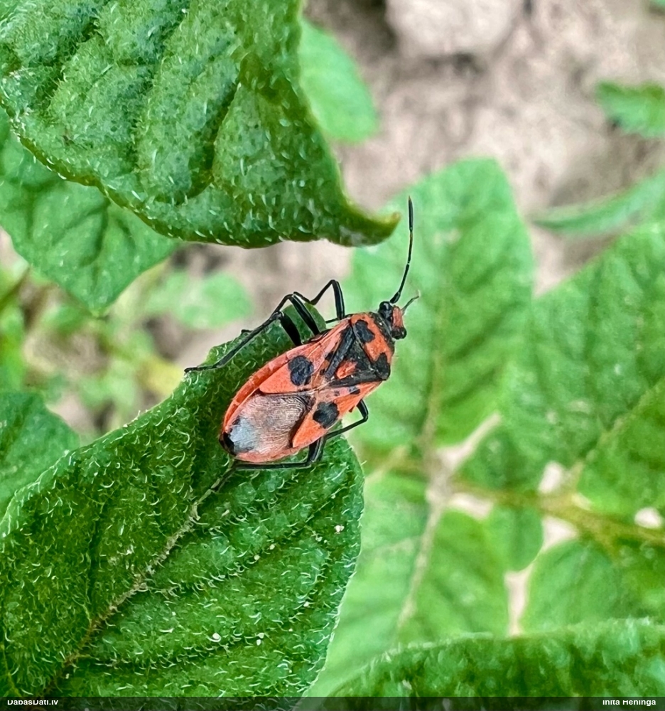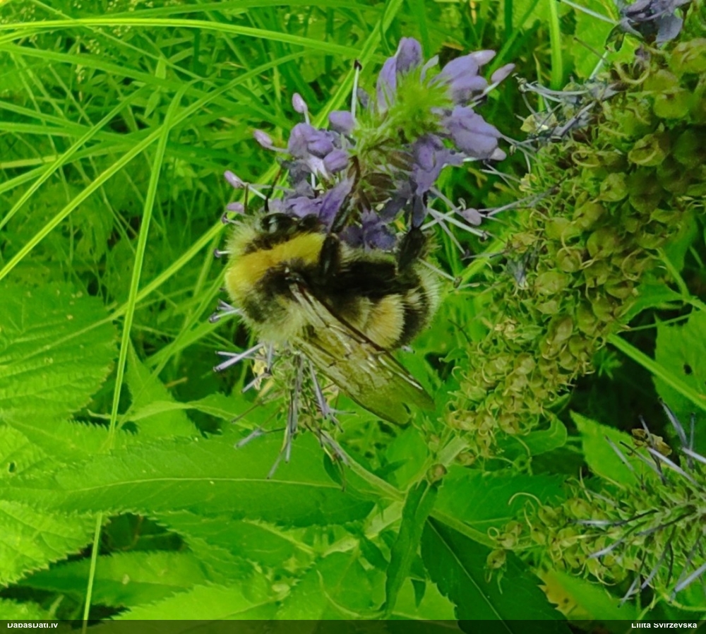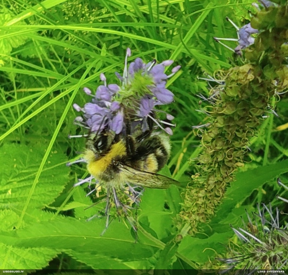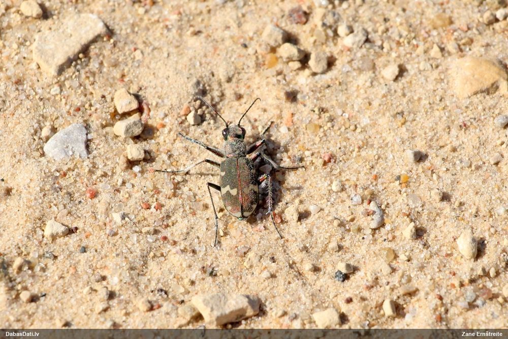Jāredz tuvāk (kaut vai izkadrēts šis pats attēls) - varbūt tumšā eļļasvabole (Meloe proscarabaeus)