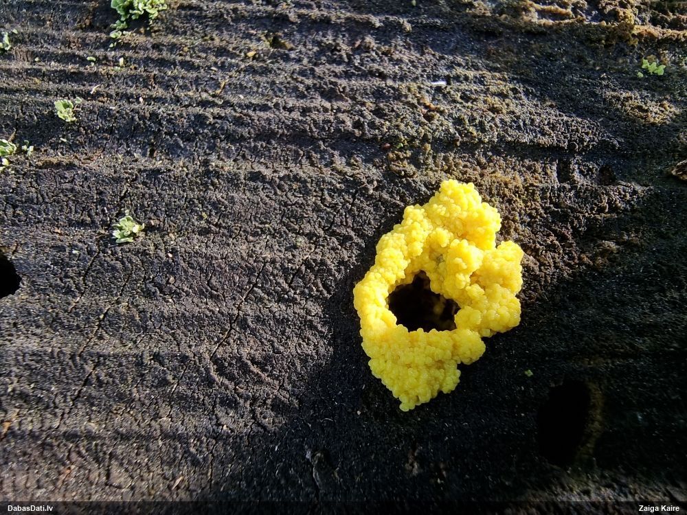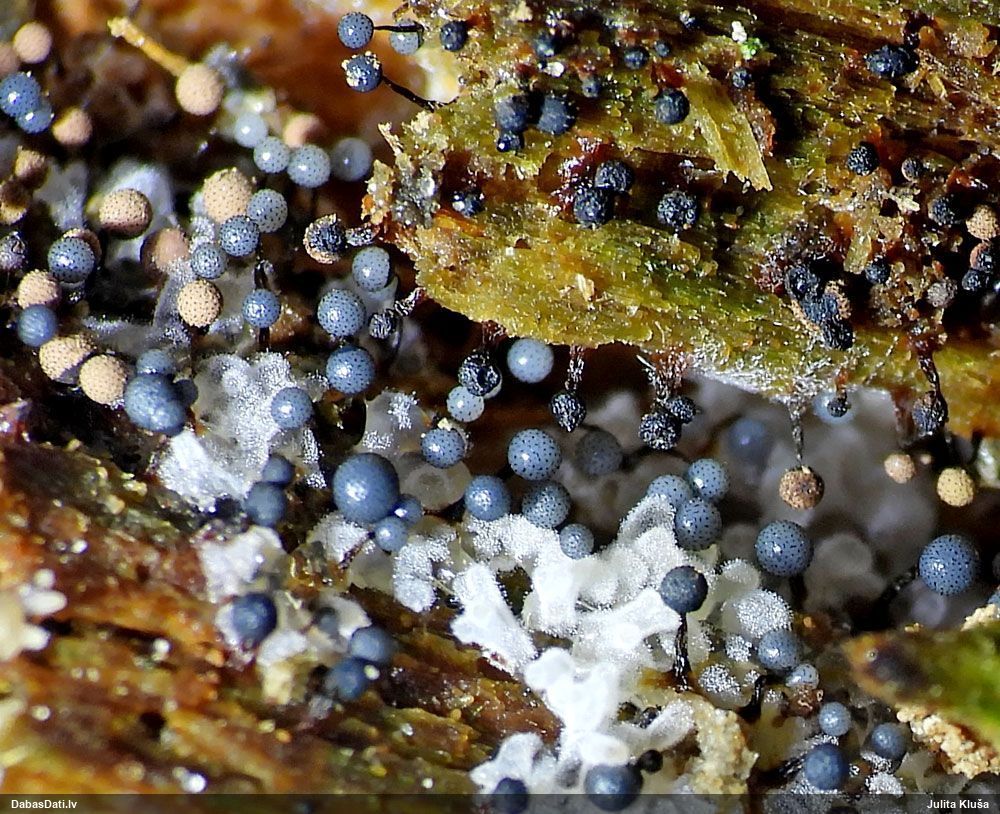 Šobrīd divas versijas - Physarum psittacinum un P.braunianum. Bez paraudziņa te skaidrīzā netiks, bet biotops interesants