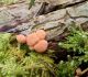 Man pēkšņi radās ideja - vai tur bija nu ļoti mitrs mikroklimats, egle ar melnalksni? Hipotētiski tādas dzeltenas var būt Diachea muscorum. Te bilde ir mazliet līdzīga: https://fr.wikipedia.org/wiki/Fichier:Craterium_muscorum,_Trawscoed,_North_Wales,_Aug_2016_-_Flickr_-_janetgraham84.jpg