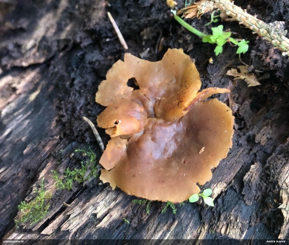 Satrūdējusi kritala mežā, nav dēļi. Iespējams, egle, jauktu koku mežs.