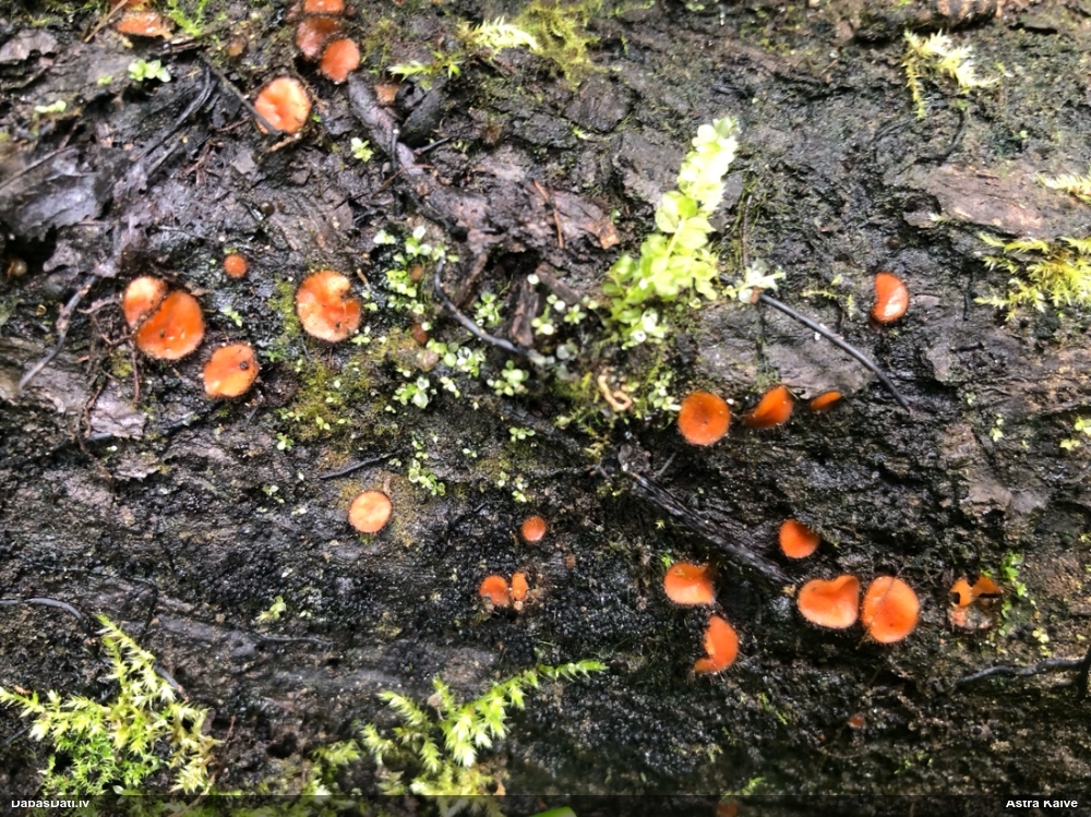 Priekš aurantiaca galīgi neatbilst jaunu augļķermeņu krāsa (kam sākumā jābūt zaļgani dzelteniem). Variants ir C.intricata, bet te mikroskopijā grūti saskatīt brīvo galu skaitu mezglos, tāpēc ātrumā droši noteikt nevaru.
