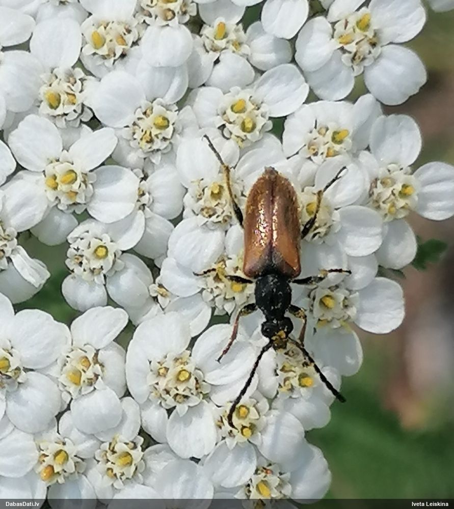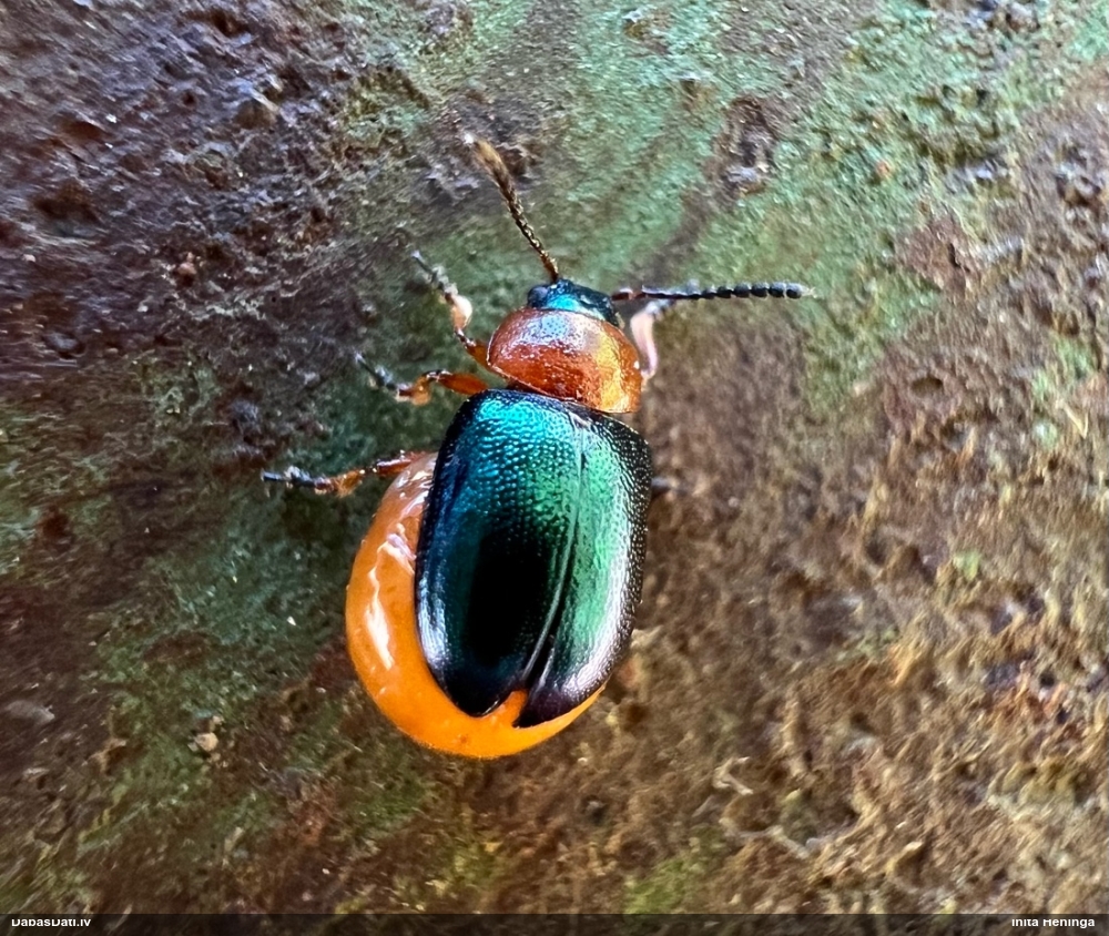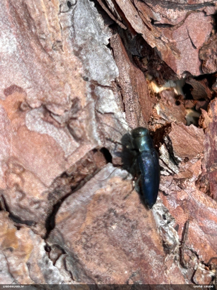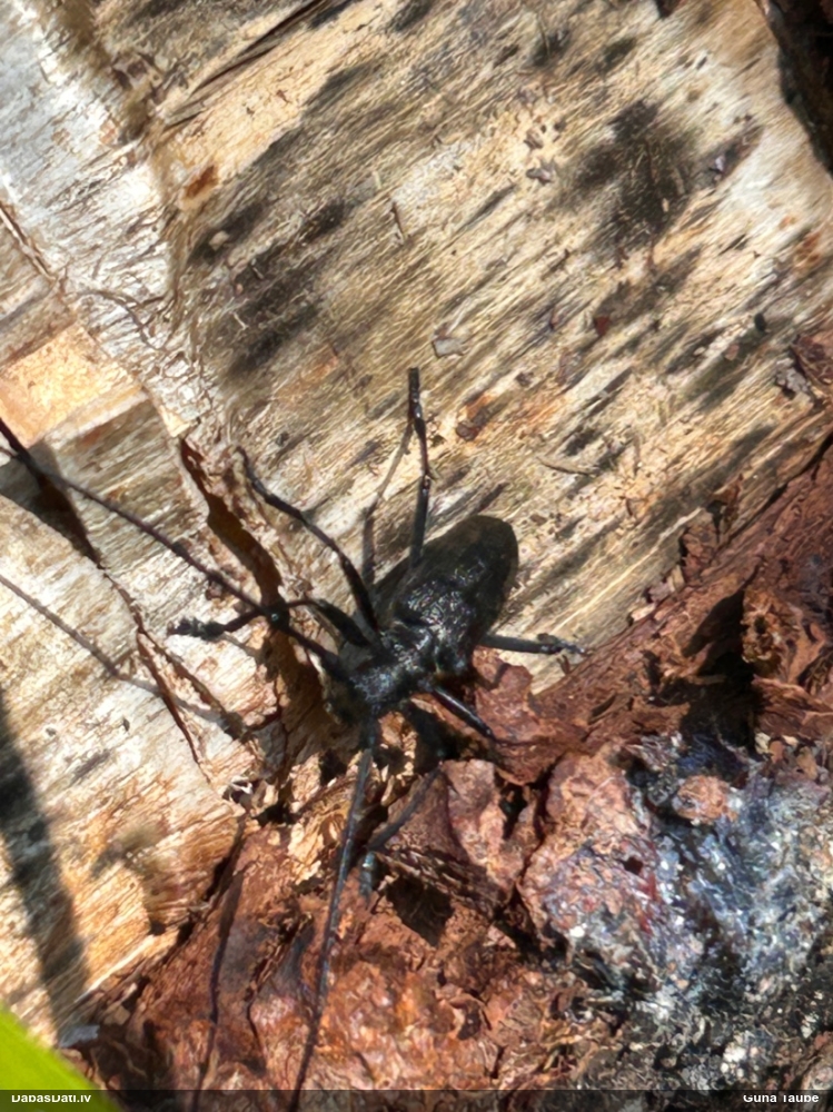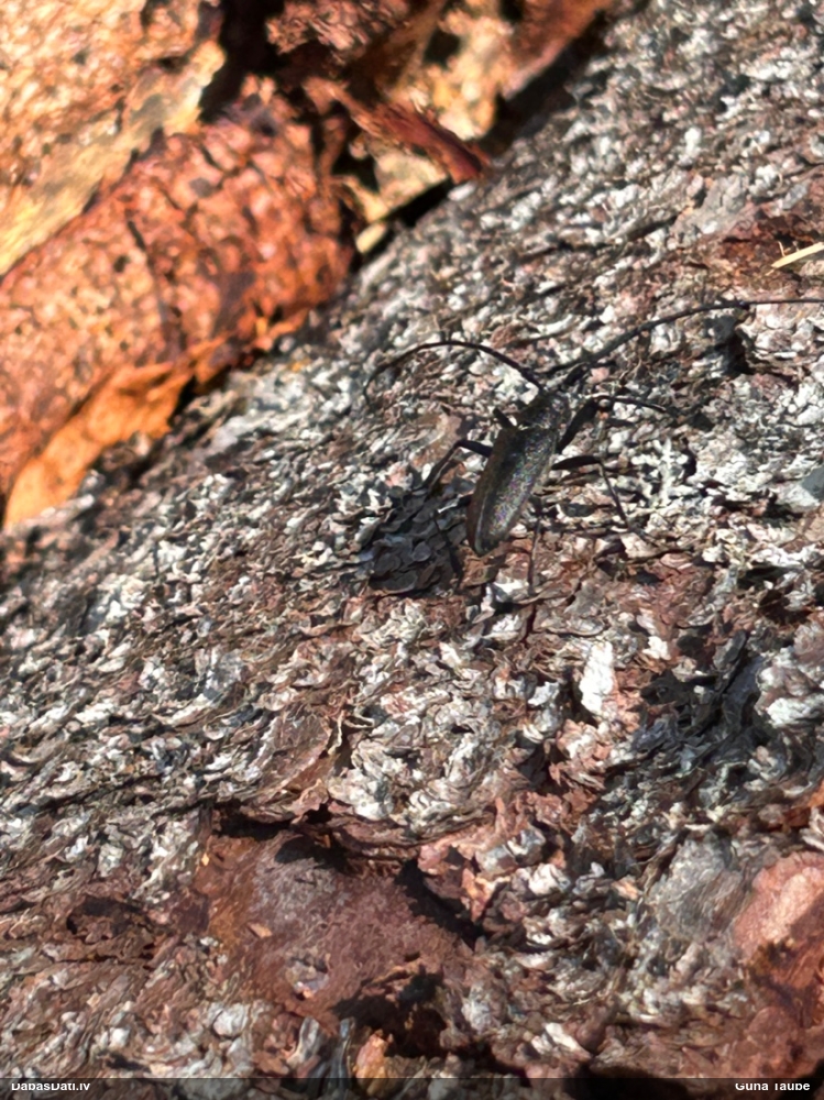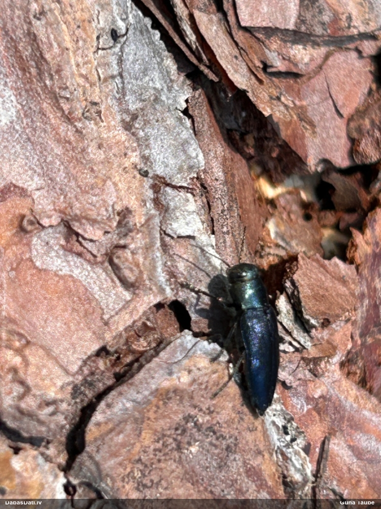 Jāredz tuvāk (kaut vai izkadrēts šis pats attēls) - varbūt tumšā eļļasvabole (Meloe proscarabaeus)