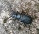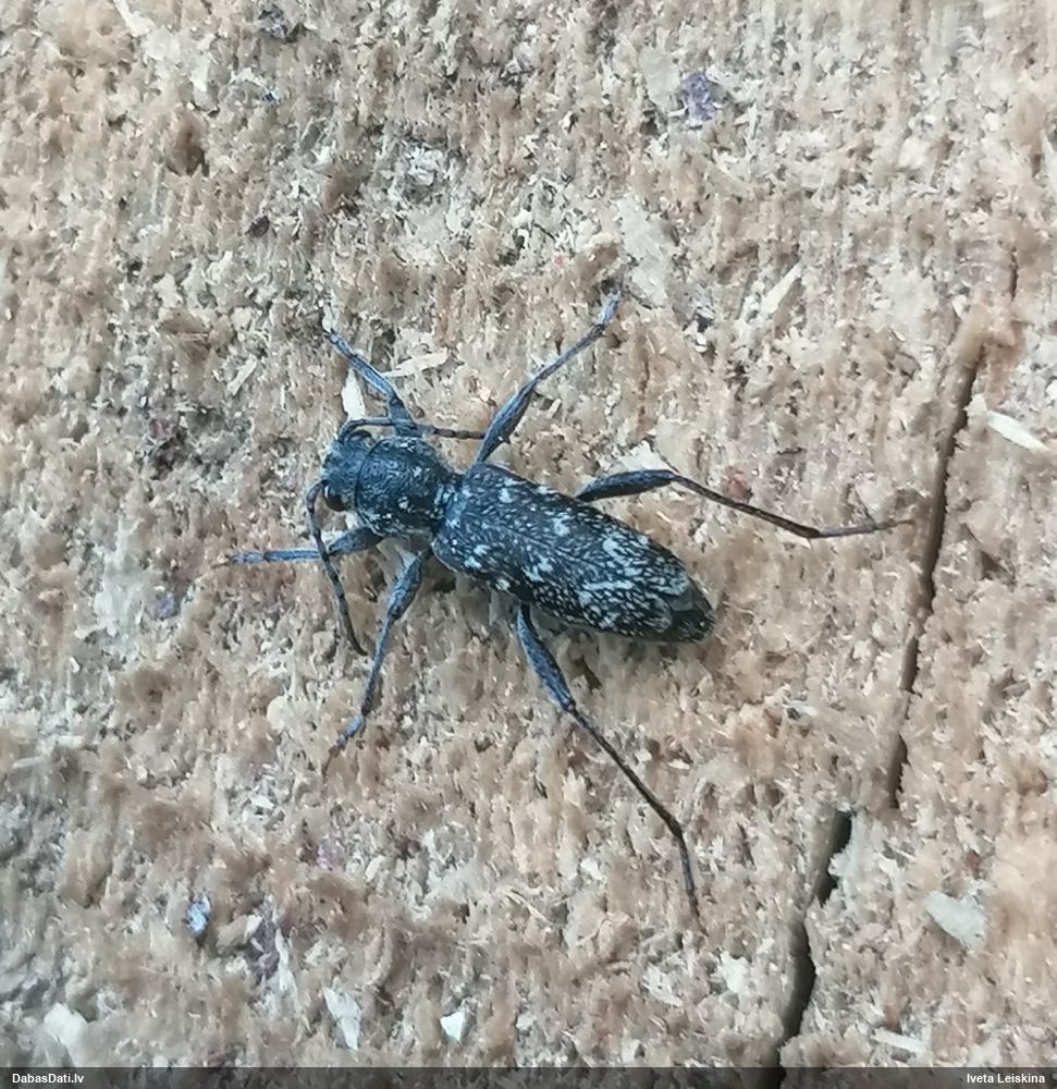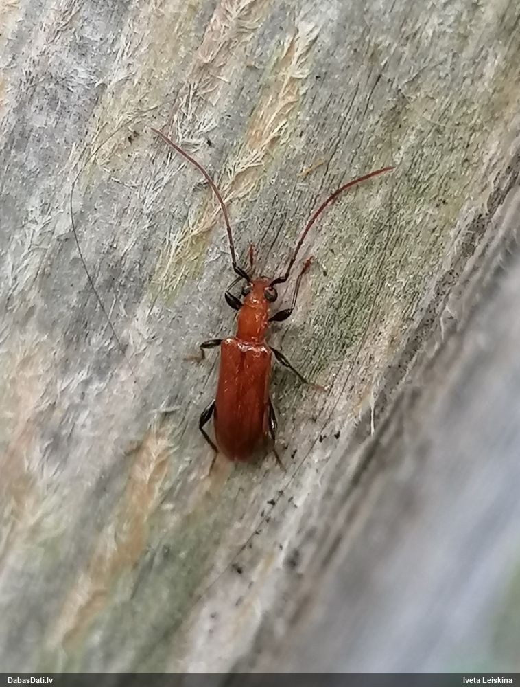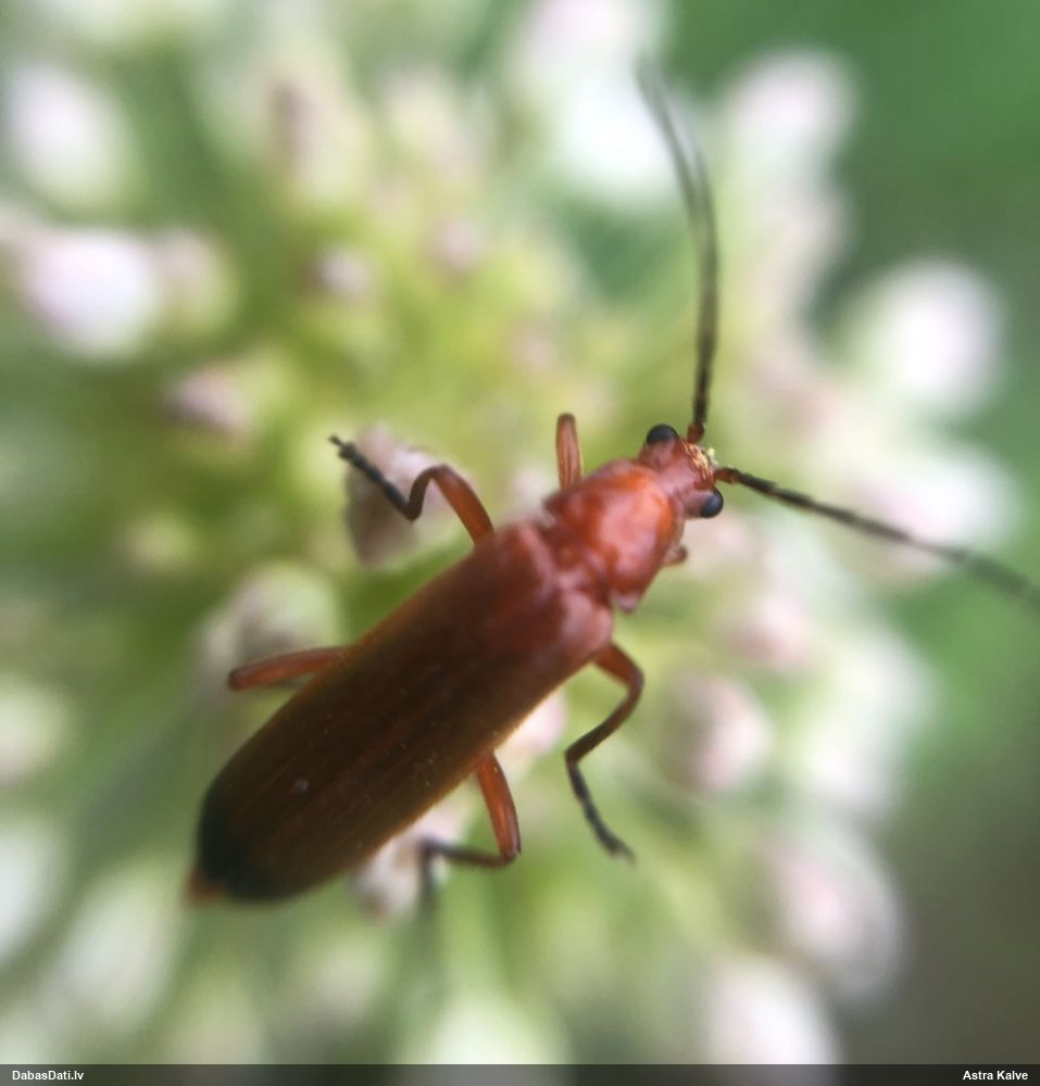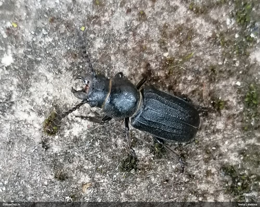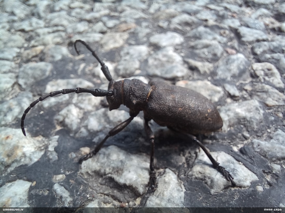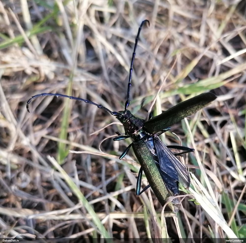 Jāredz tuvāk (kaut vai izkadrēts šis pats attēls) - varbūt tumšā eļļasvabole (Meloe proscarabaeus)