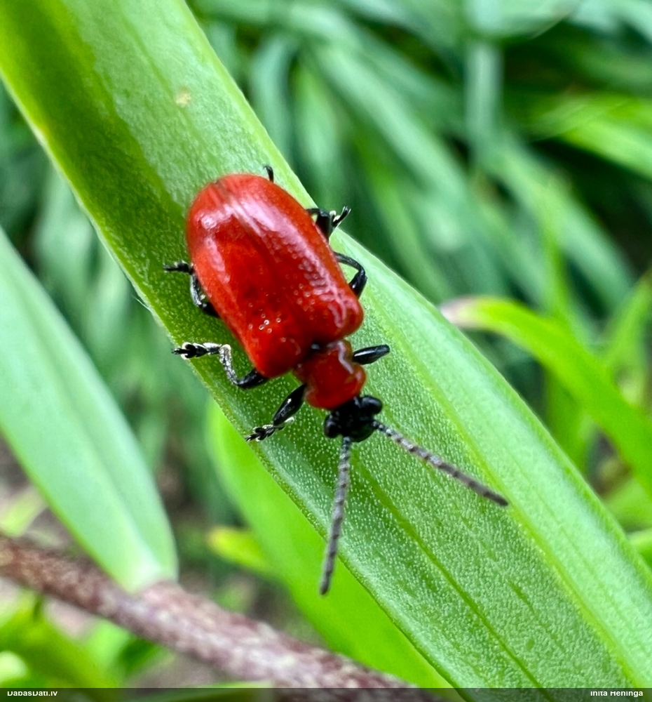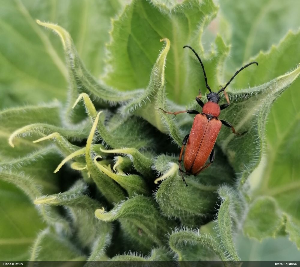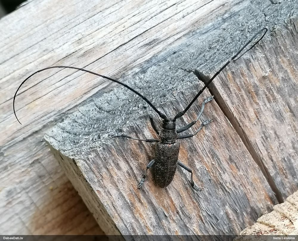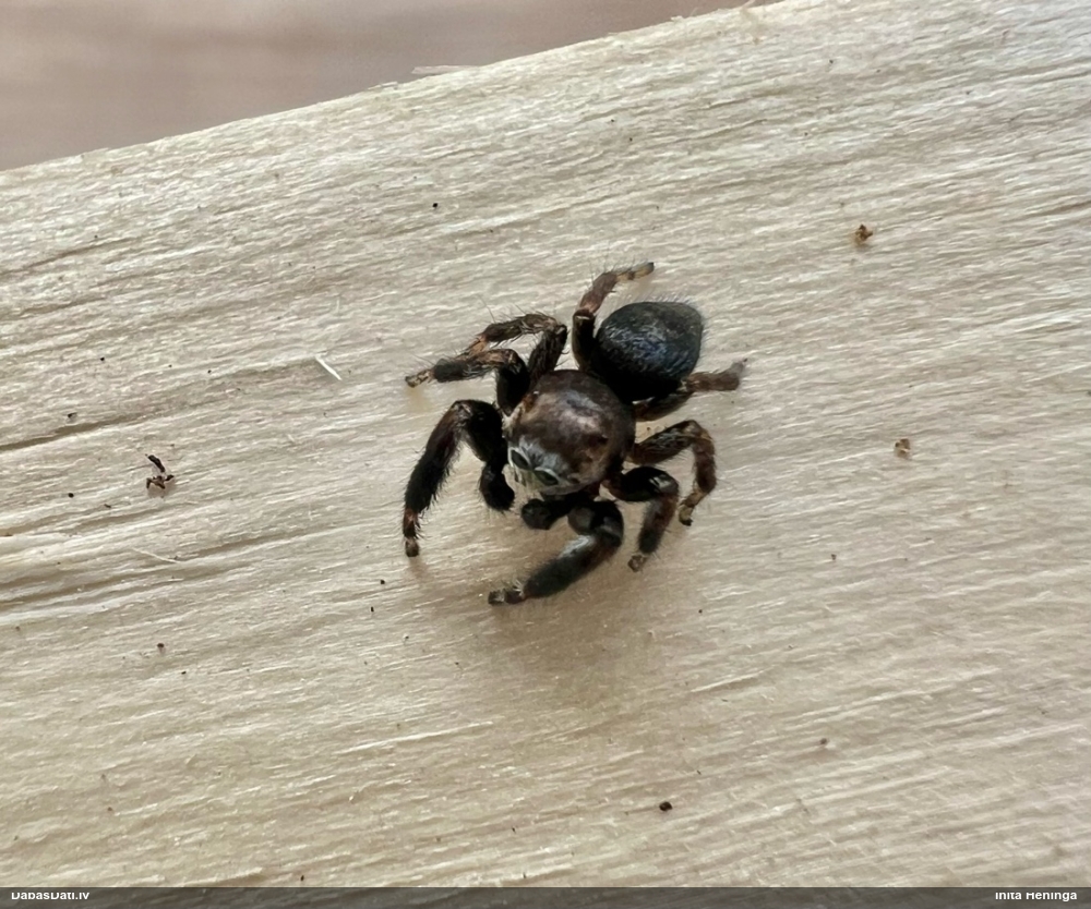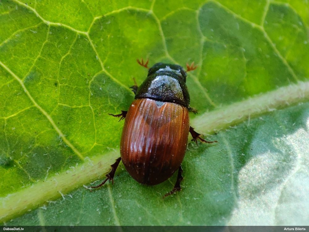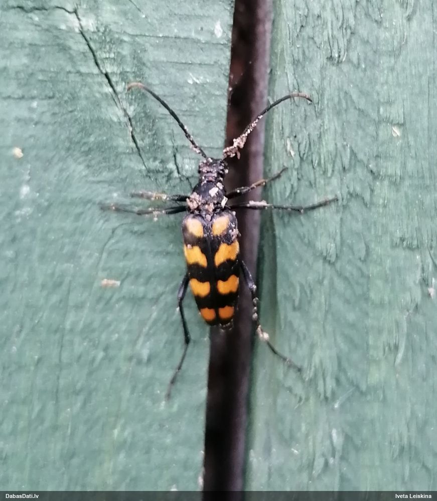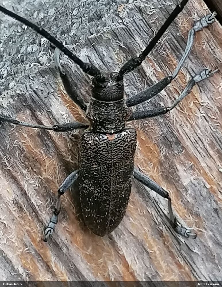 Jāredz tuvāk (kaut vai izkadrēts šis pats attēls) - varbūt tumšā eļļasvabole (Meloe proscarabaeus)