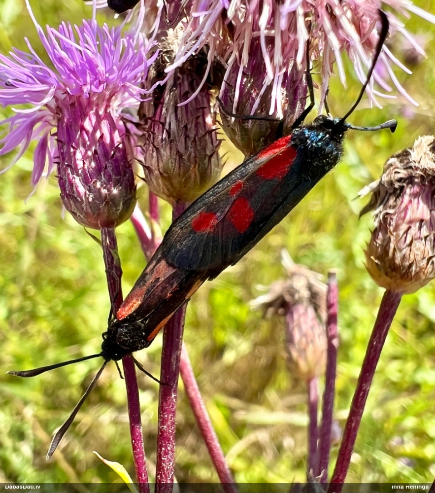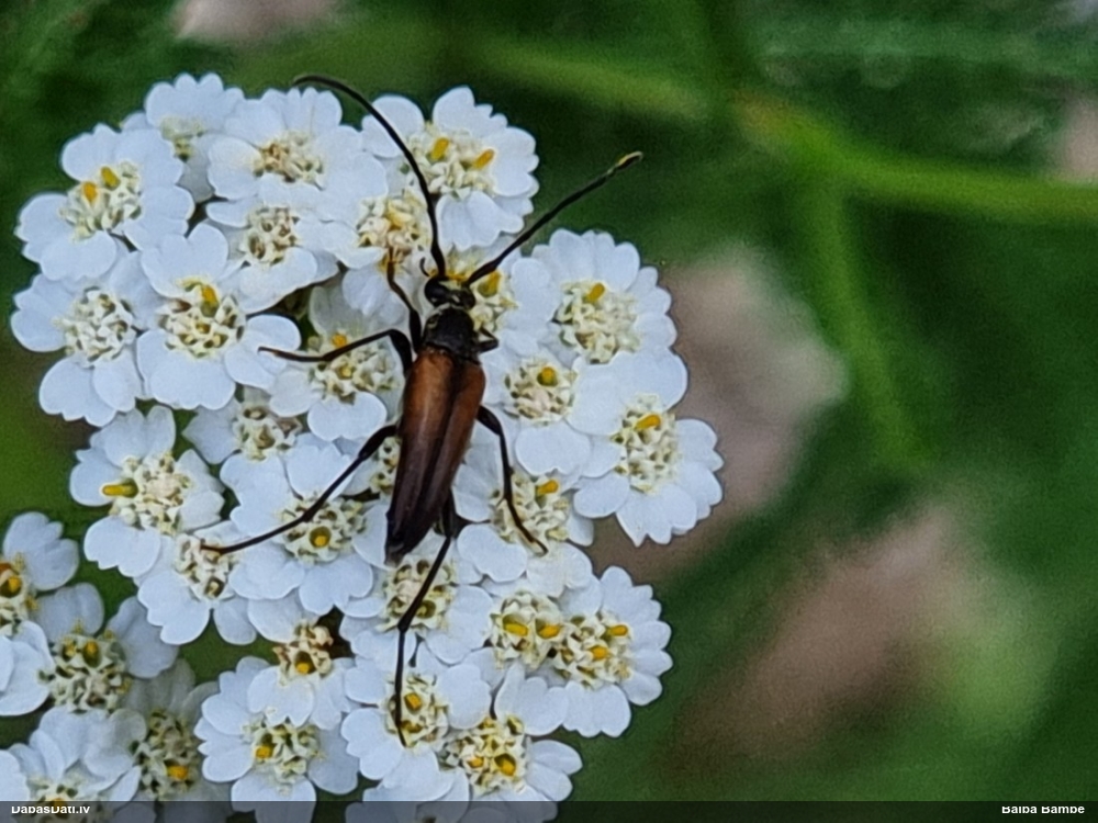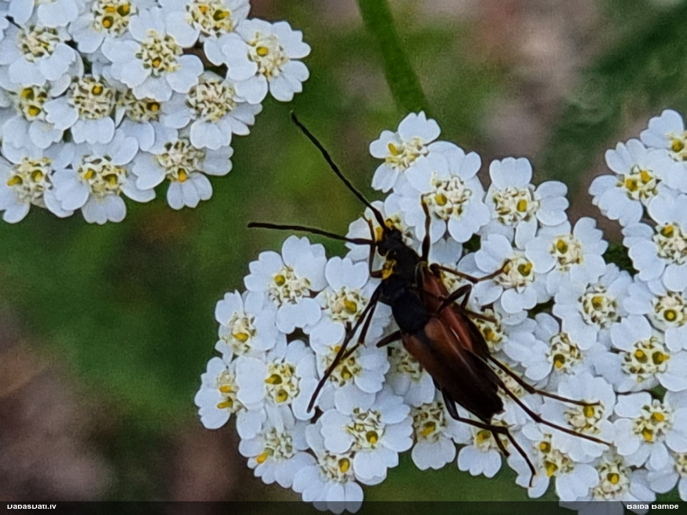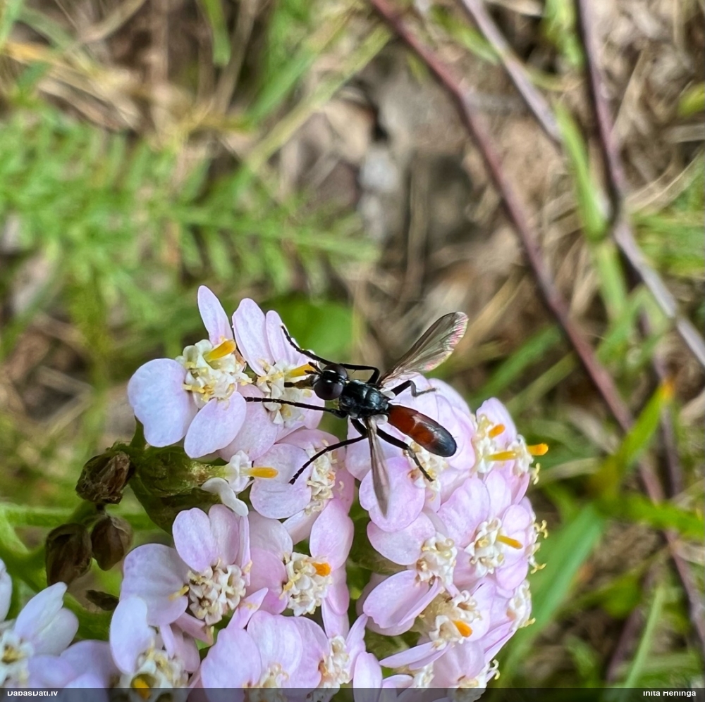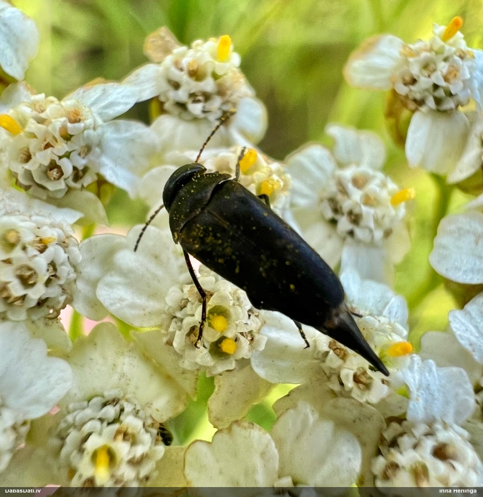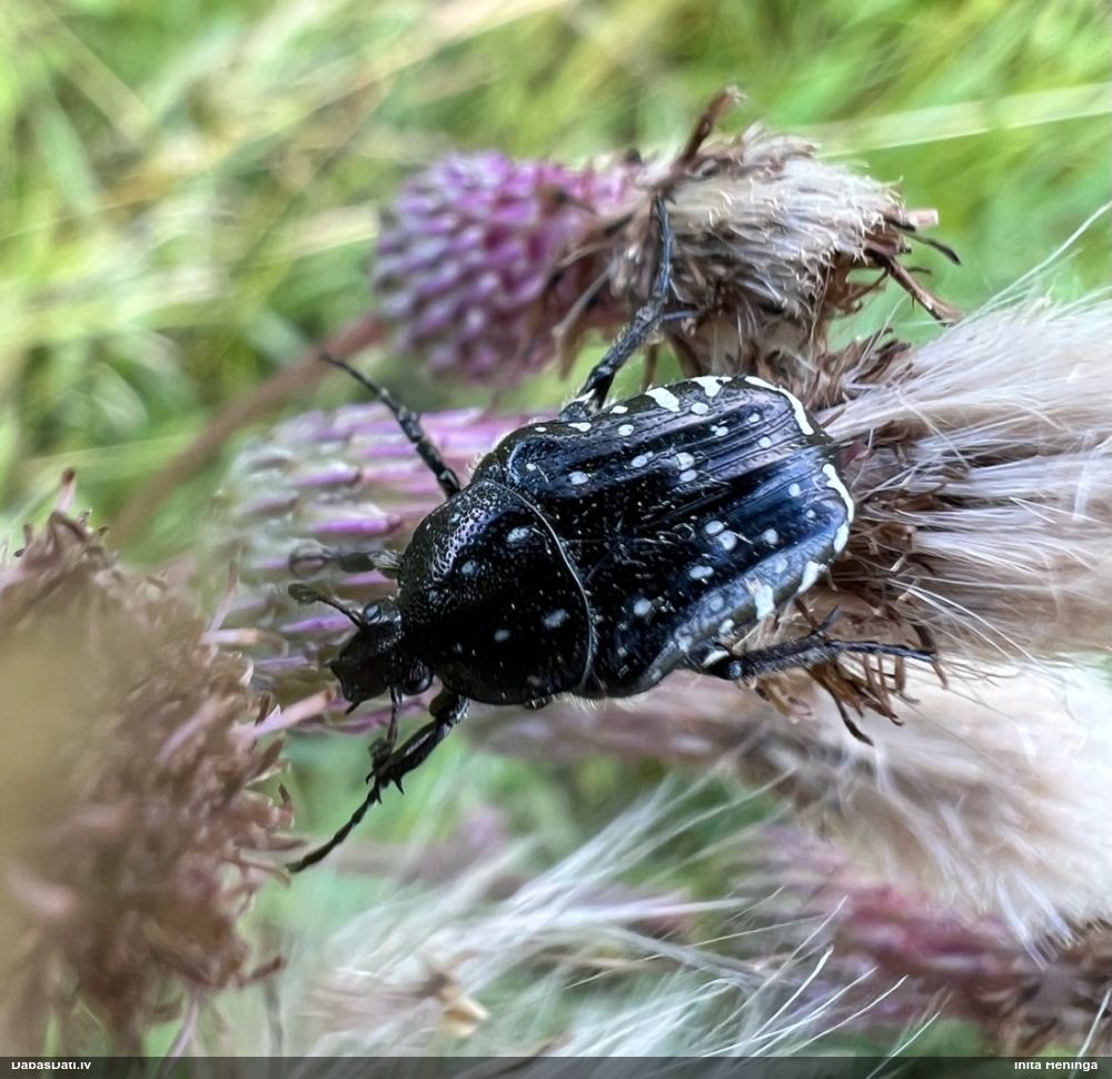 Jāredz tuvāk (kaut vai izkadrēts šis pats attēls) - varbūt tumšā eļļasvabole (Meloe proscarabaeus)