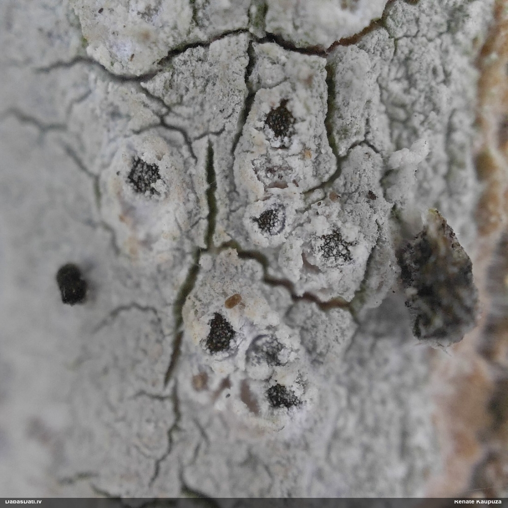Raivo, nebūs Chaenotheca furfuracea, bet gan C.brachypoda (dabisku mežu indikatorsuga). C.furfuracea ir ar izteiktu laponi, daudz lielāki aķ un košāk zaļa krāsa