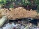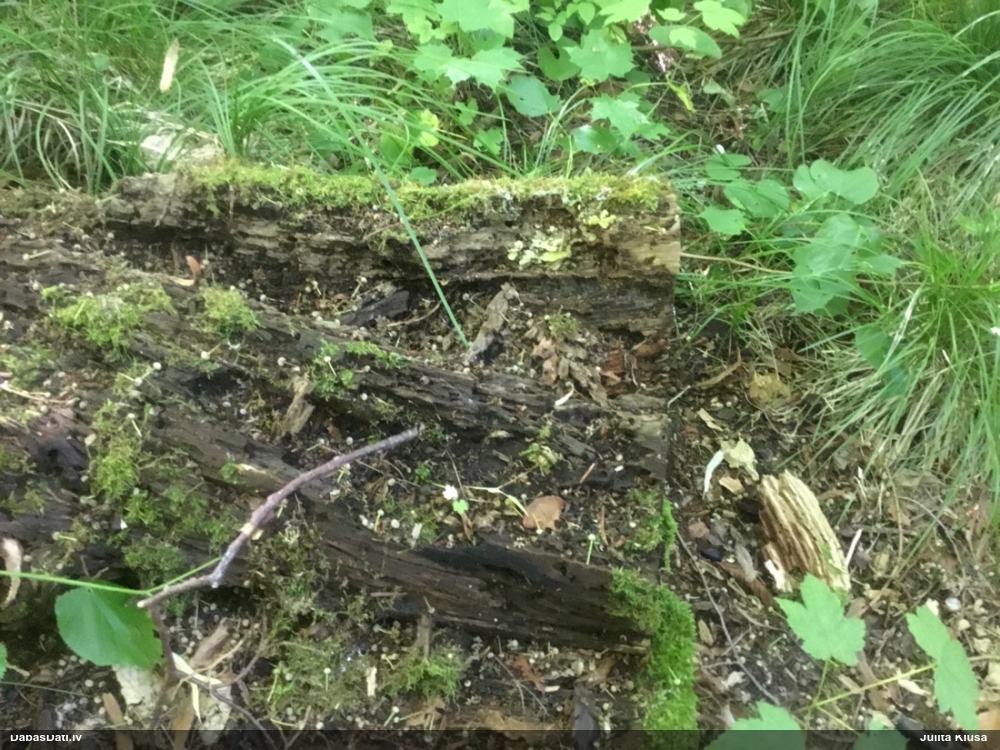 Satrūdējusi kritala mežā, nav dēļi. Iespējams, egle, jauktu koku mežs.