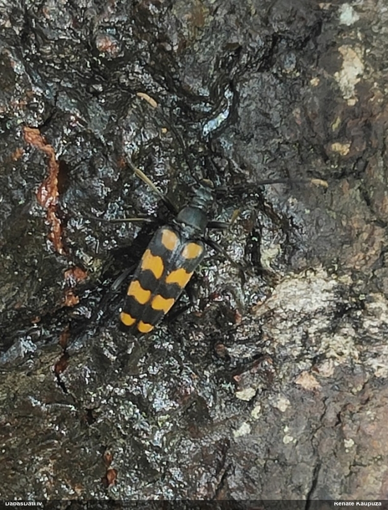 Jā, zem mizas uz nokaltušas priedes.