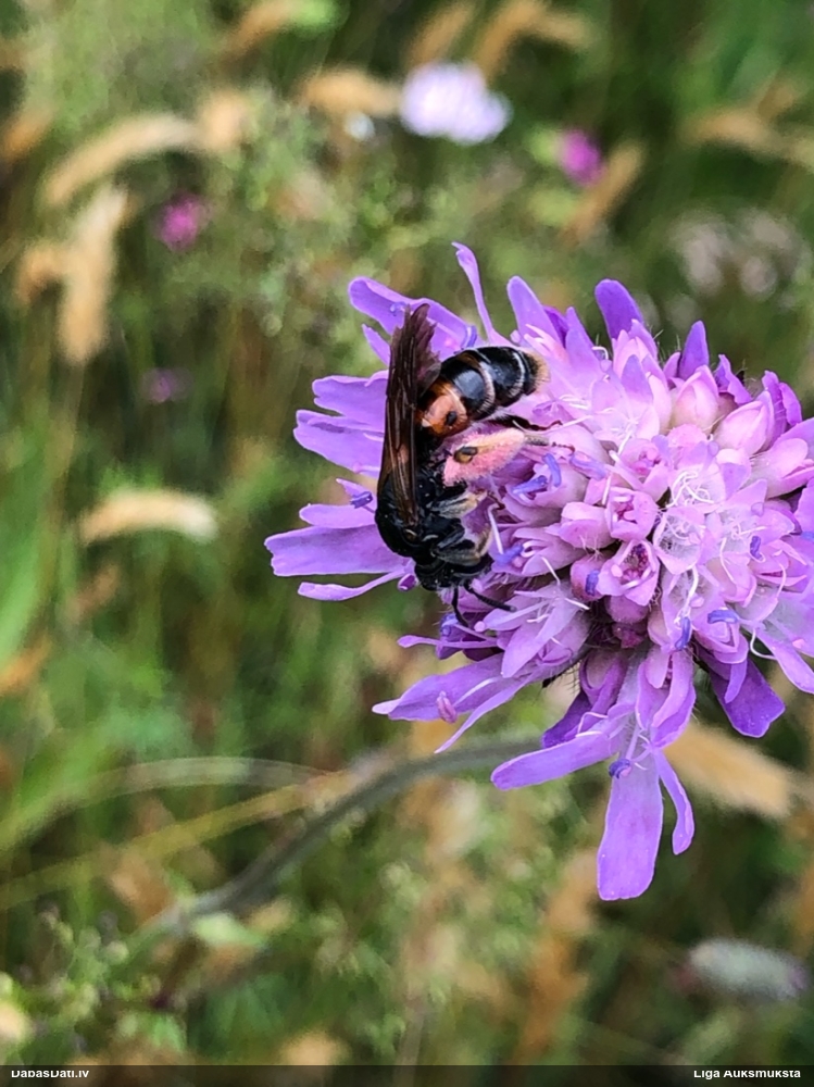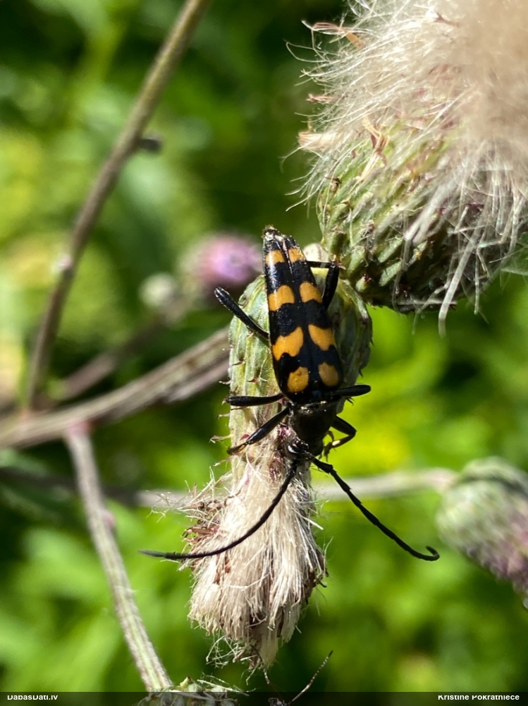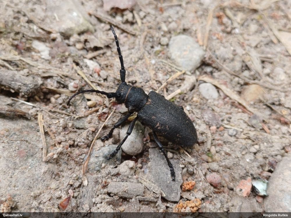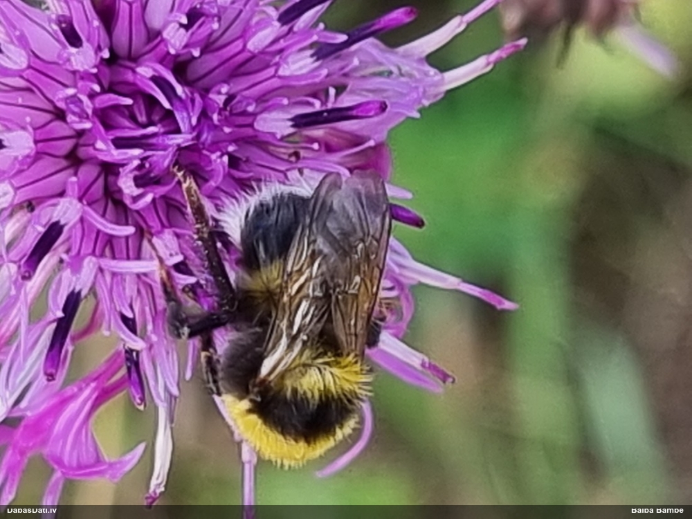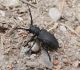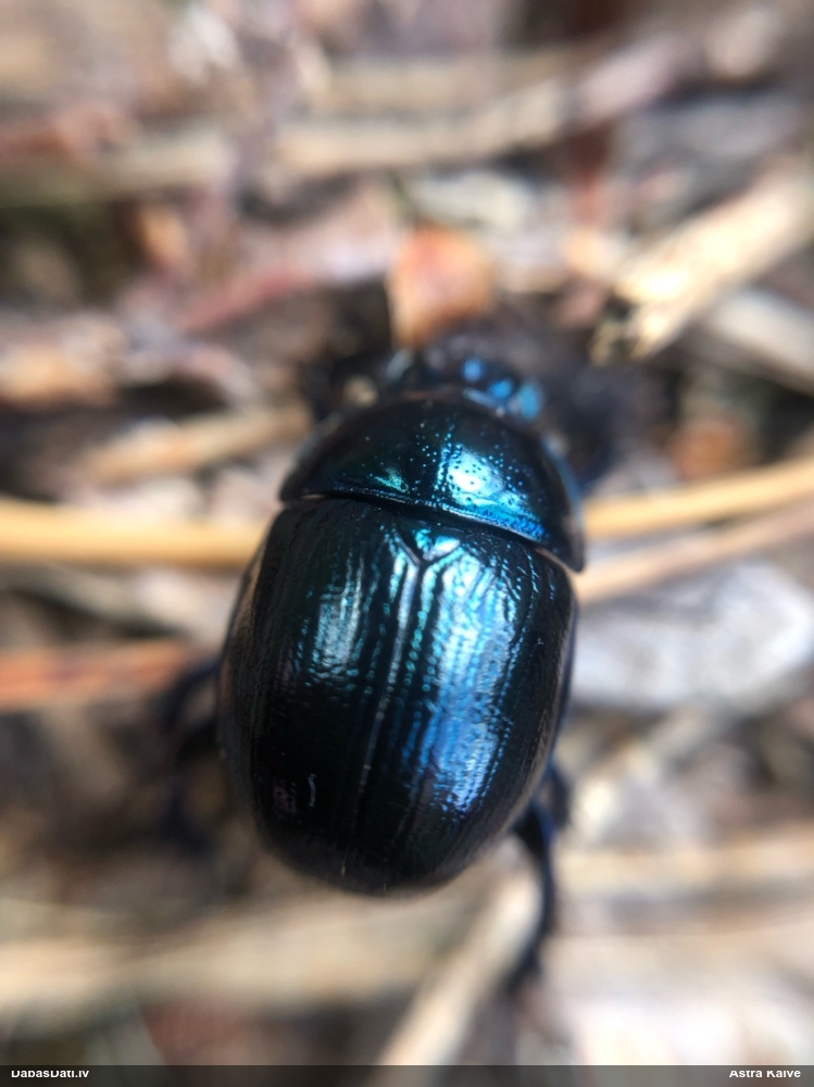 Jāredz tuvāk (kaut vai izkadrēts šis pats attēls) - varbūt tumšā eļļasvabole (Meloe proscarabaeus)