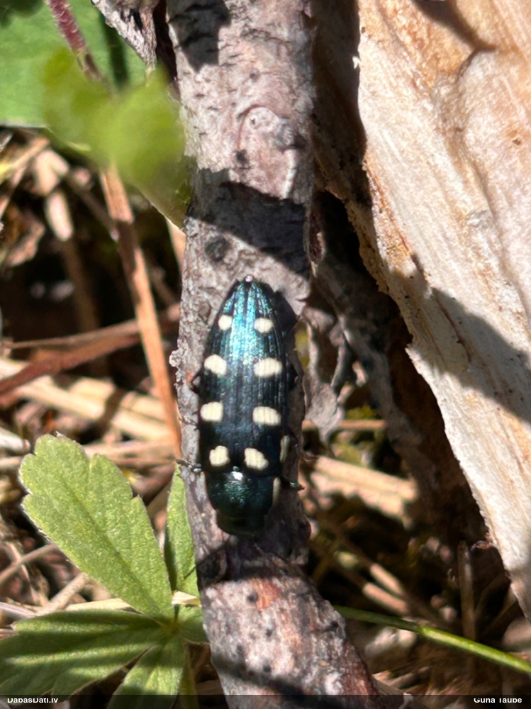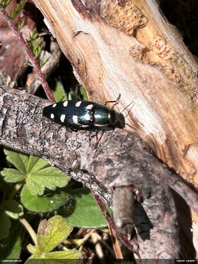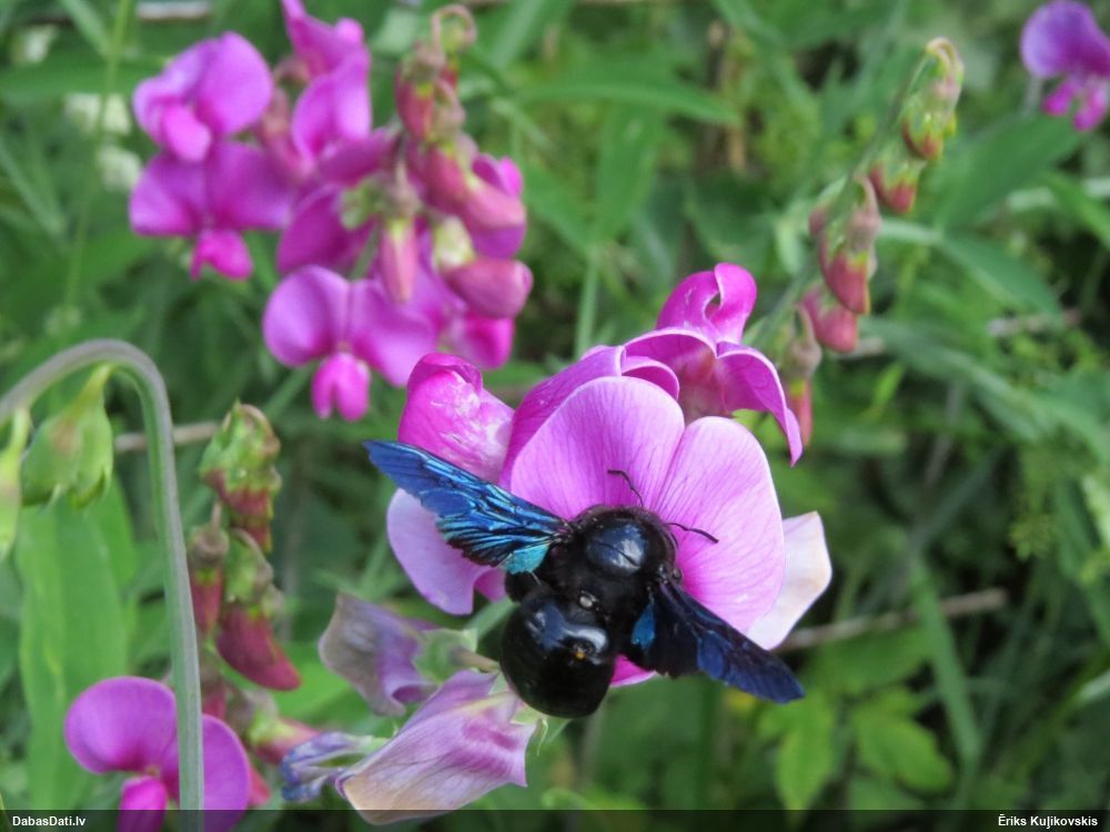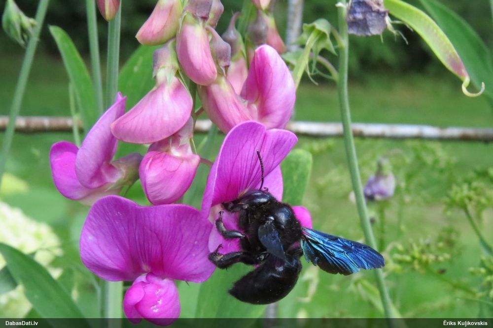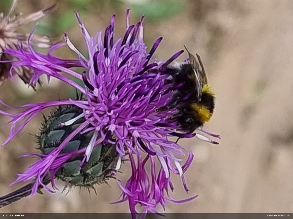 Jāredz tuvāk (kaut vai izkadrēts šis pats attēls) - varbūt tumšā eļļasvabole (Meloe proscarabaeus)